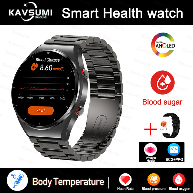 Новинка 2023 Смарт-часы с точным измерением уровня сахара в крови мужские Смарт-часы с ЭКГ + ППГ пульсометром оксиметром для здоровья мужские спортивные часы