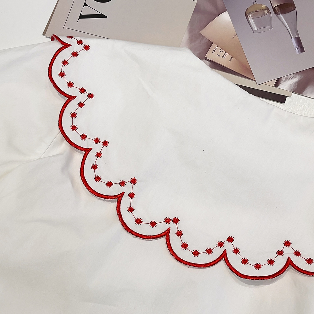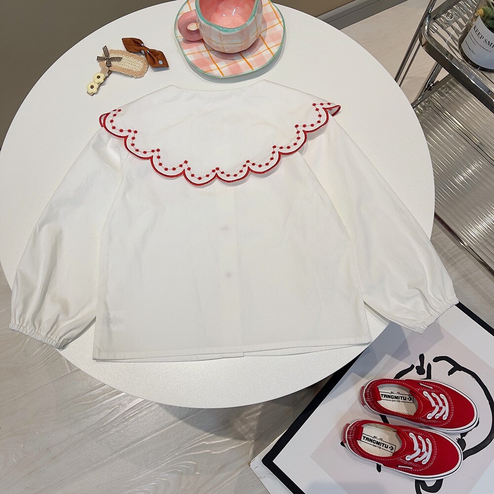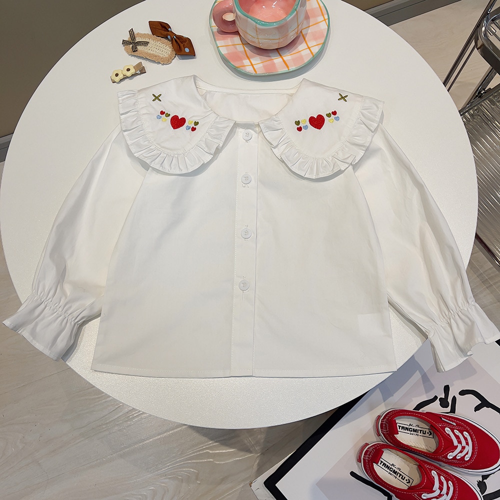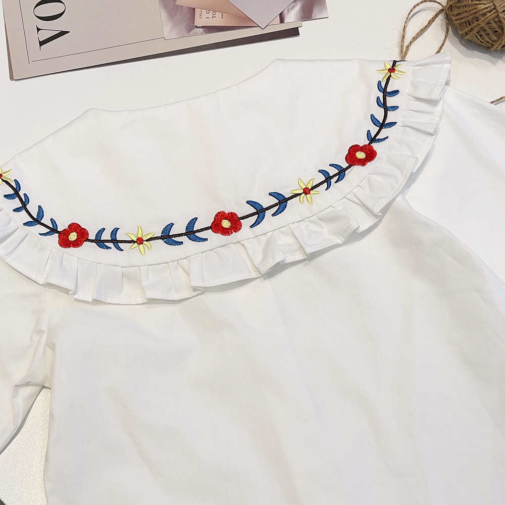 Новинка 2023, весенняя одежда с длинными рукавами для девочек, детская одежда, рубашка с вышивкой и кукольным воротником для маленьких девочек, одежда для маленьких девочек