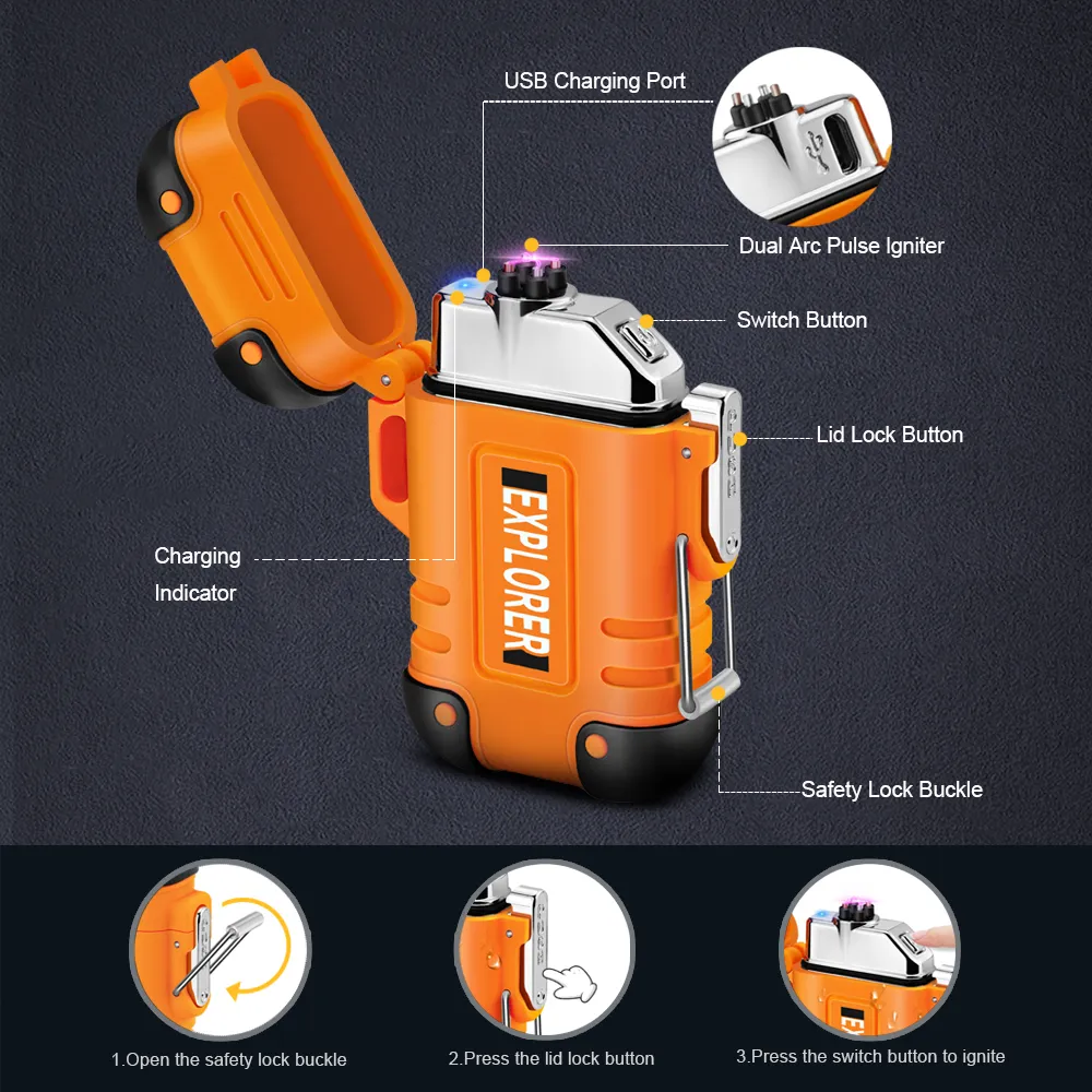Новинка 2023, водонепроницаемая зажигалка с двойной дугой, ветрозащитная плазменная зажигалка с зарядкой от USB, аксессуары для курения без огня на открытом воздухе и кемпинга