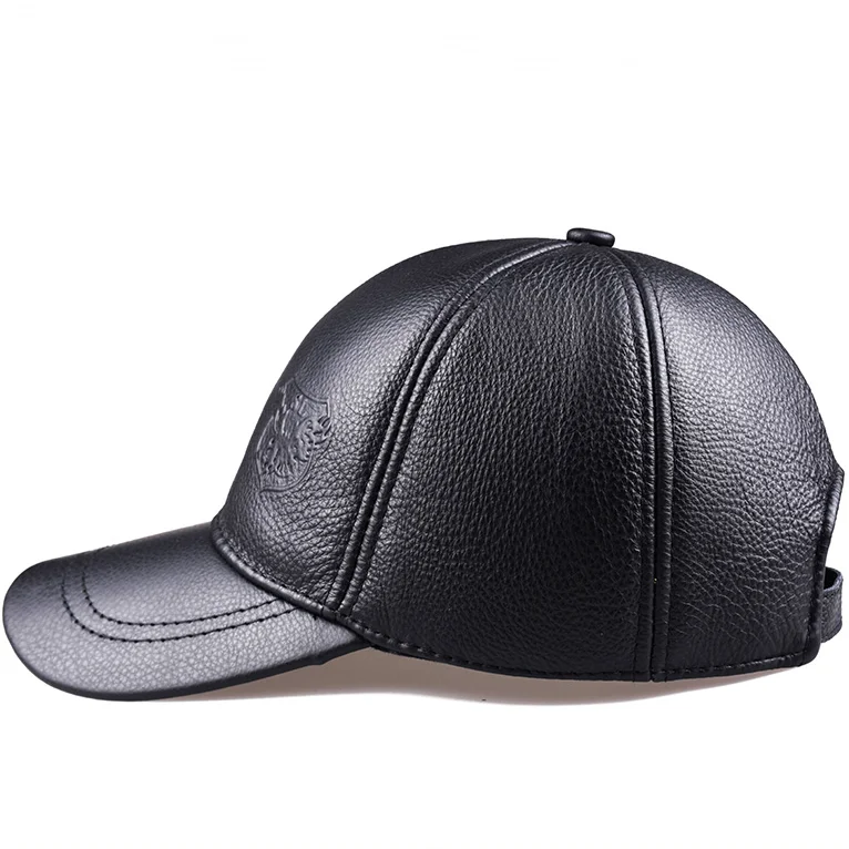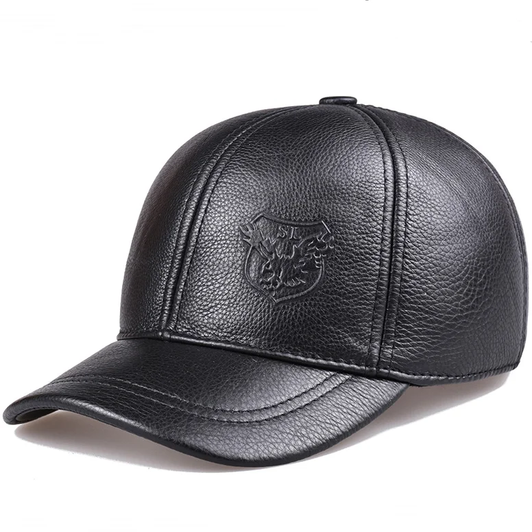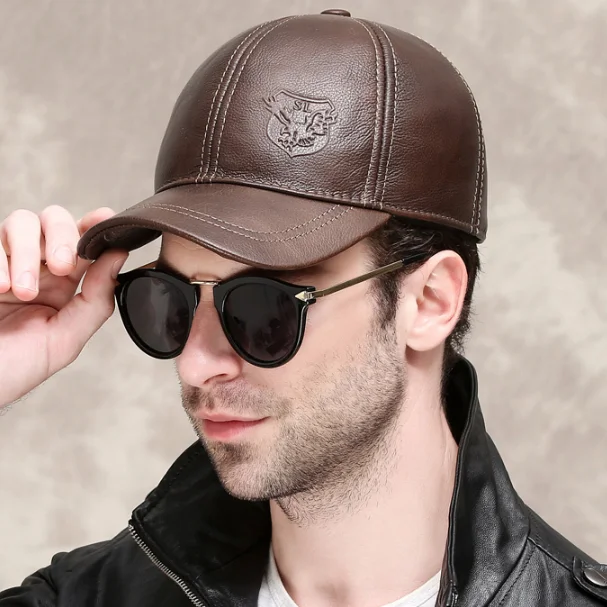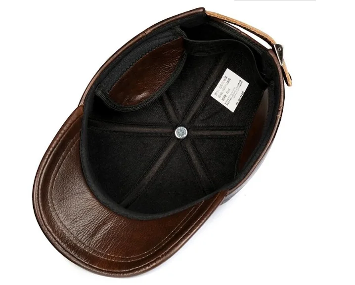 Новинка 2023, зимние мужские бейсболки из натуральной кожи, мужские повседневные теплые шапки из воловьей кожи с ремнем и ушками, регулируемые спортивные летные шапки 56-60