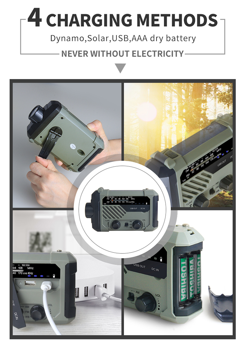 Портативное многофункциональное радио-Солнечное радио имеет 3 метода зарядки, а мощный аккумулятор емкостью 2000 мАч можно заряжать через USB-кабель, солнечную панель или рукоятку. Положите его в чемодан, дорожную сумку или Носите вручную с помощью прикрепленного шнурка, используйте его в любое время и в любом месте.