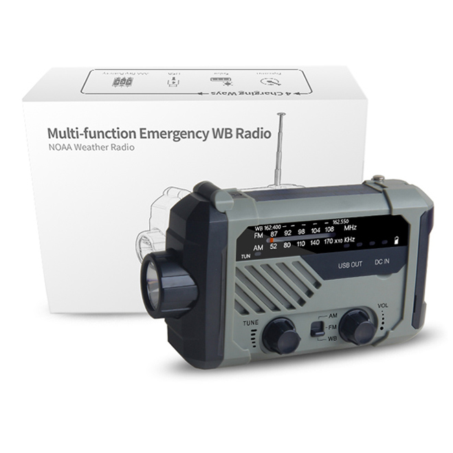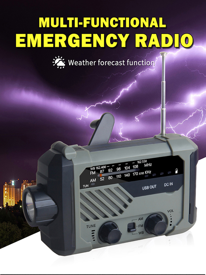 Портативное аварийное погодное радио-Ручная заводная Солнечная AM/FM/WB NOAA-радио с фонариком для чтения USB-зарядное устройство SOS Alert, 2000 мАч для улицы, работает от батареи AAA