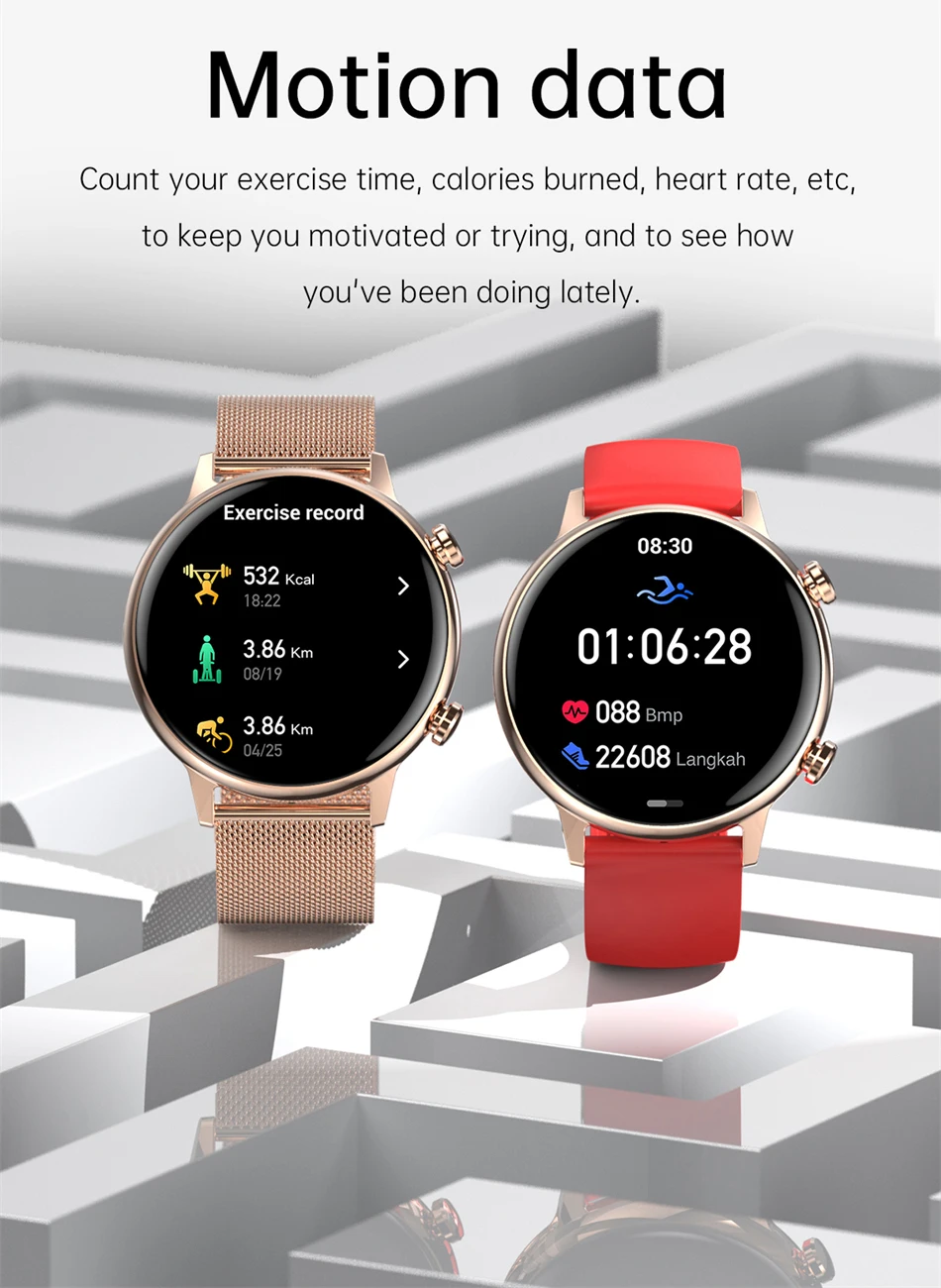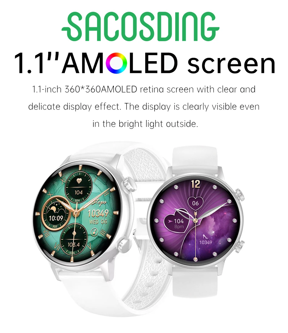 Новинка 2024, Смарт-часы AMOLED, женские Смарт-часы с Bluetooth, голосовым помощником, HealthTracker, спортивные часы, водонепроницаемые часы для дам