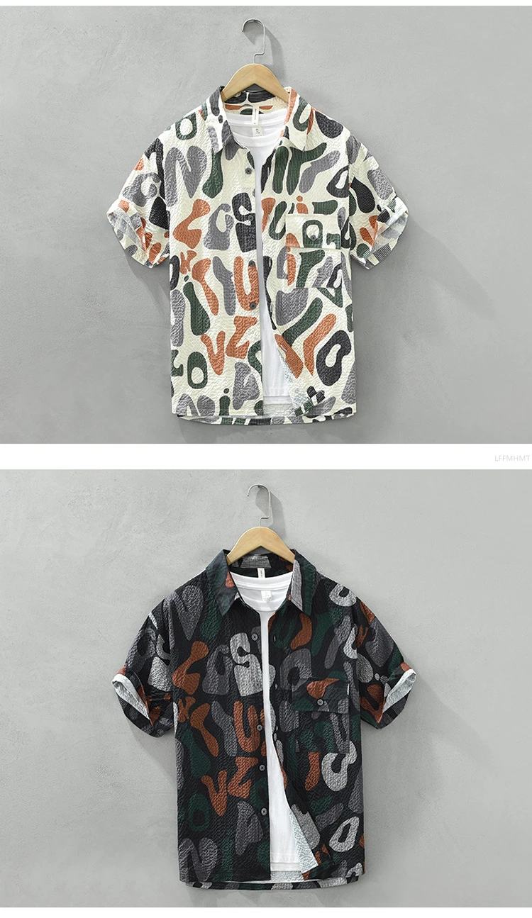 3730 в японском стиле винтажная свежая рубашка с принтом Мужская Летняя мода Гавайские пляжные праздничные блузки с лацканами уличная одежда модные Уютные Топы LFFMHMT