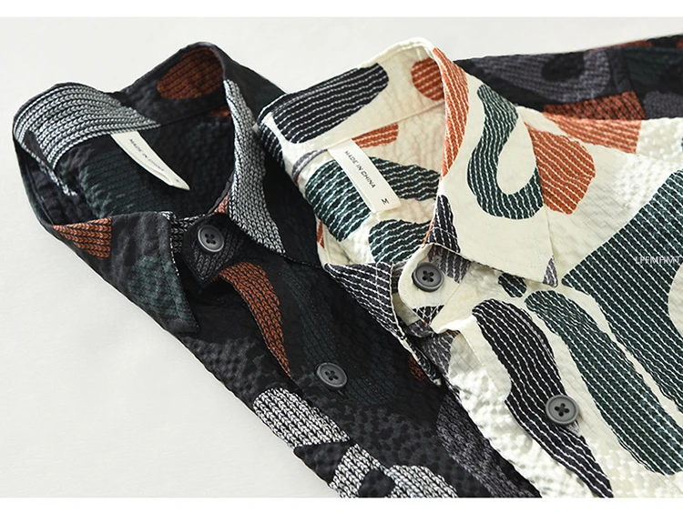 Новинка 3730, винтажная рубашка в японском стиле с принтом, мужская летняя модная пляжная блузка с лацканами для Гавайских праздников, уличная модная женская одежда