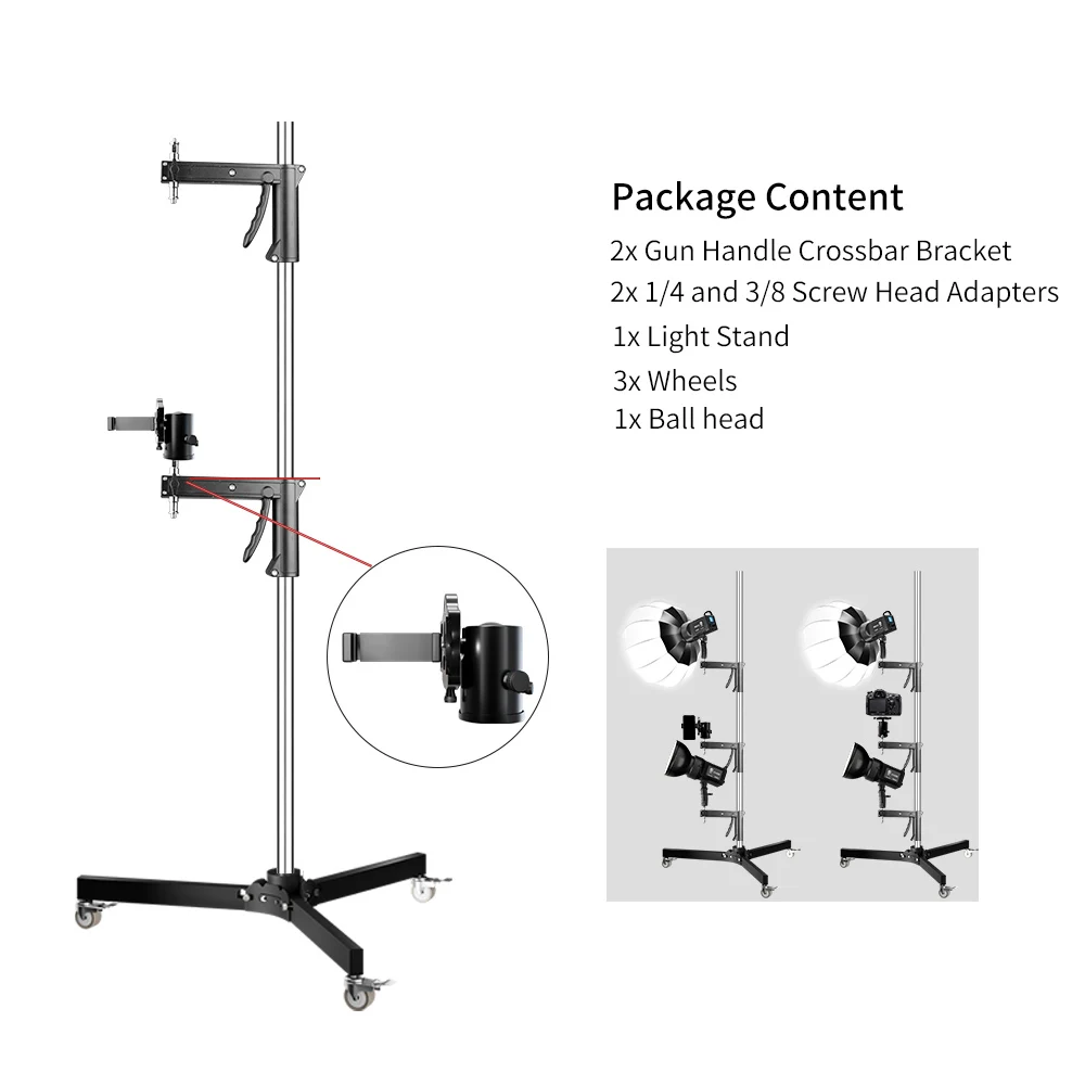 Новинка 63 см-190 см рукоятка для пистолета штатив с винтом 1/4 и 3/8 с колесами складной штатив для студийной вспышки