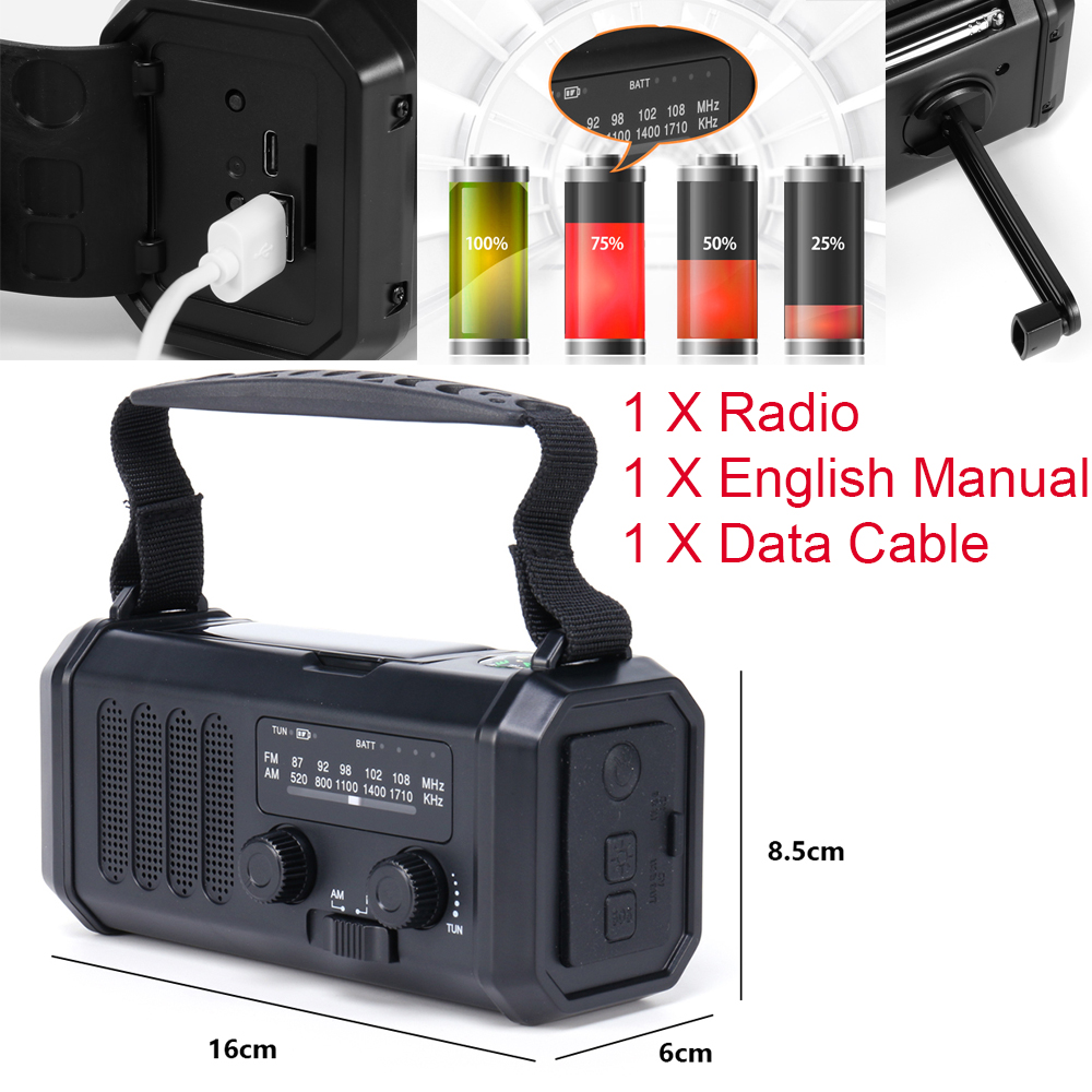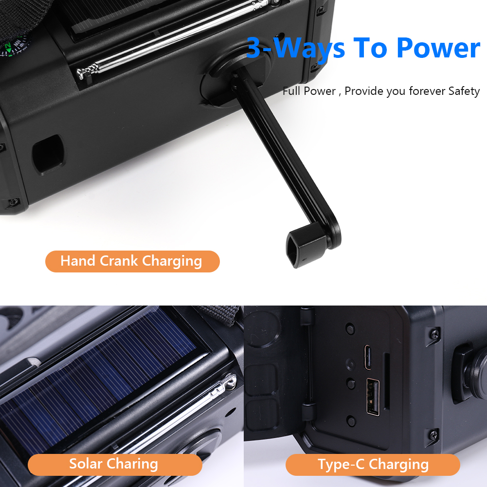 Солнечная энергия AM FM-радио SOS Alarm Type-C Зарядка Аварийного Радио со светодиодным фонариком Многофункциональная лампа для чтения для кемпинга