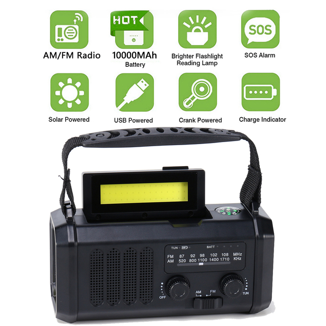 Новинка, аварийное портативное зарядное устройство на солнечной энергии с ручным механизмом, 10000 мАч, зарядное устройство для телефона, SOS, AM/FM/NOAA, карманный фонарик для погоды, радио