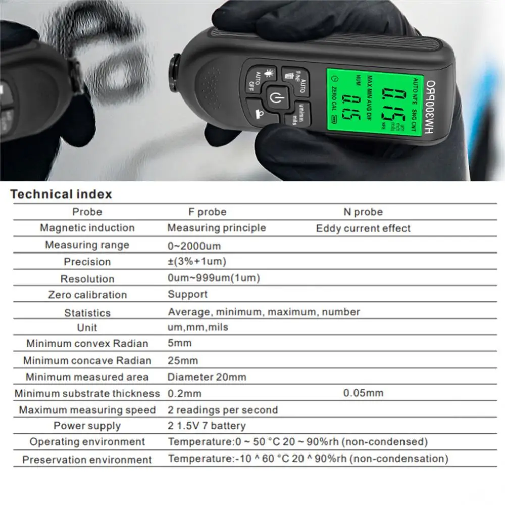 Новая HW-300PRO автомобильная пленка для краски автоматический толщиномер 0-2000UM FE/NFE тестер толщины покрытия ручные автомобильные инструменты для краски