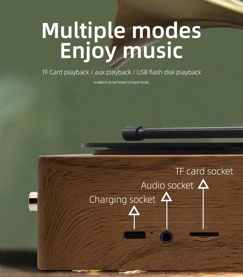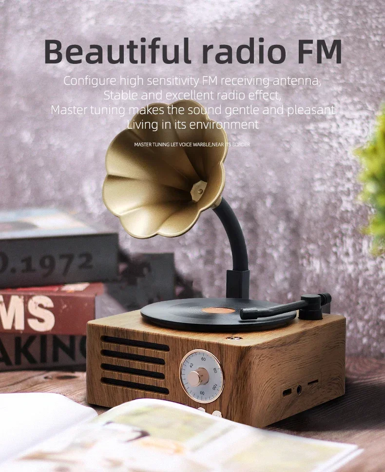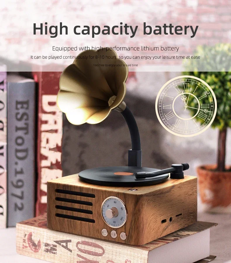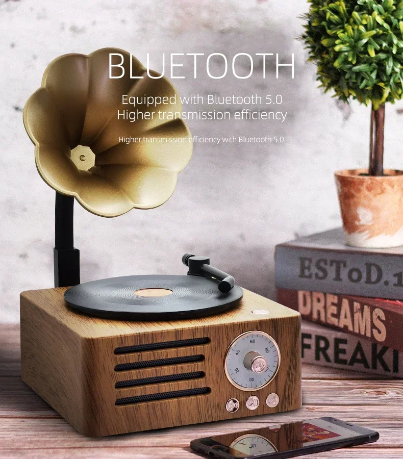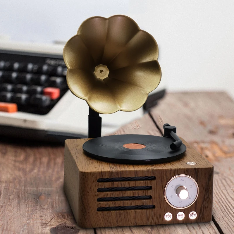 Ретро-граммофон форма Bluetooth динамик портативный ящик беспроводной динамик открытый для звуковой системы ТФ фм радио музыка MP3 сабвуфер