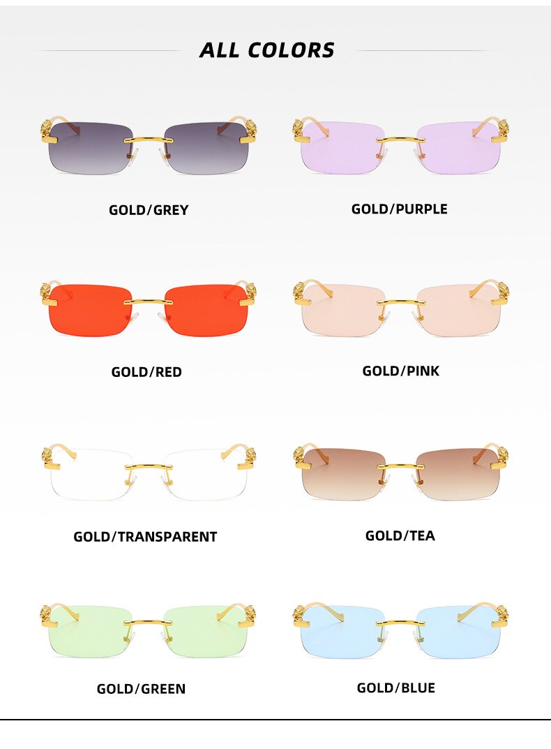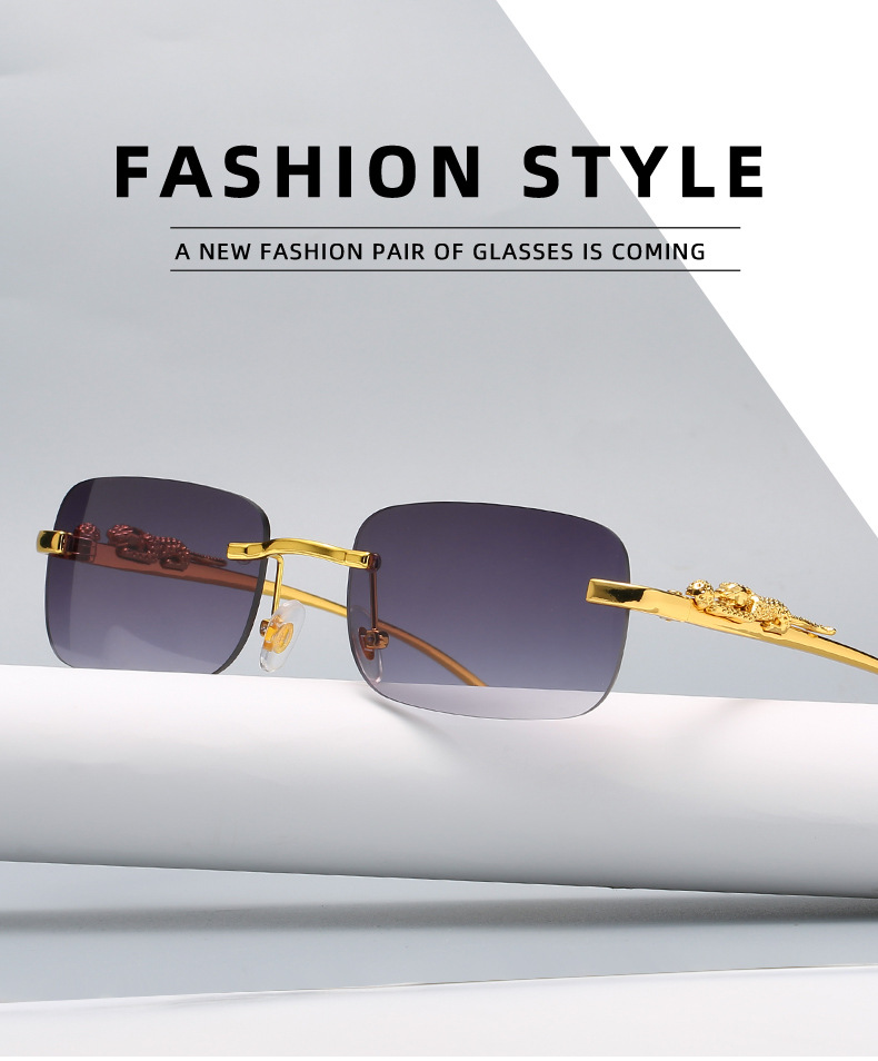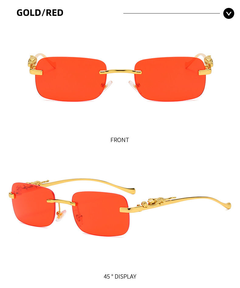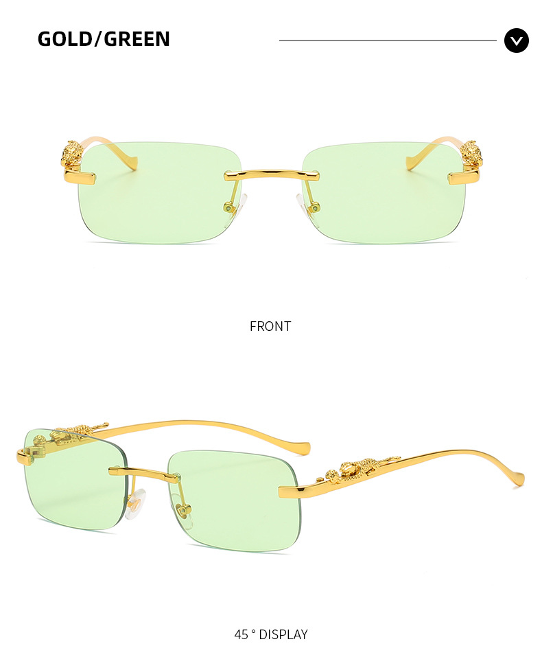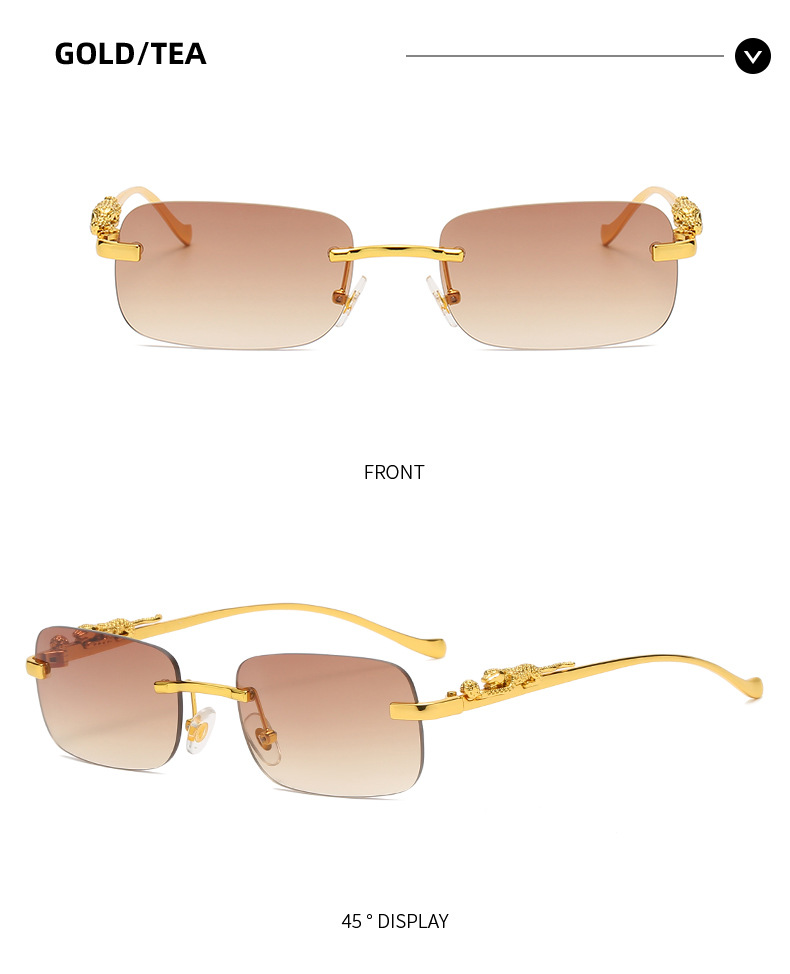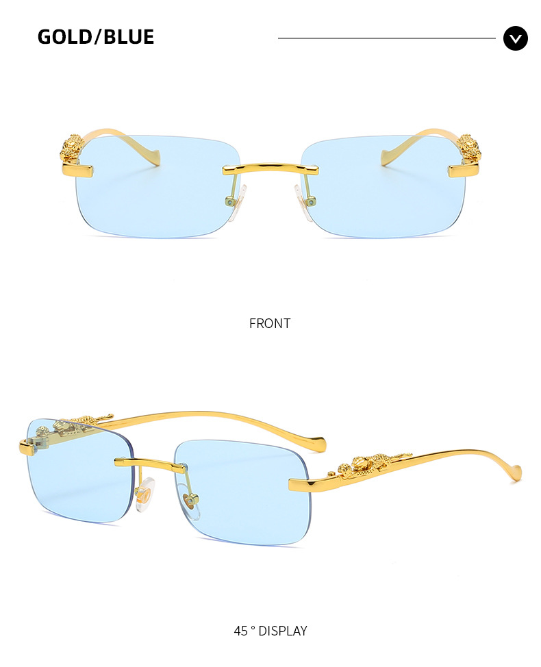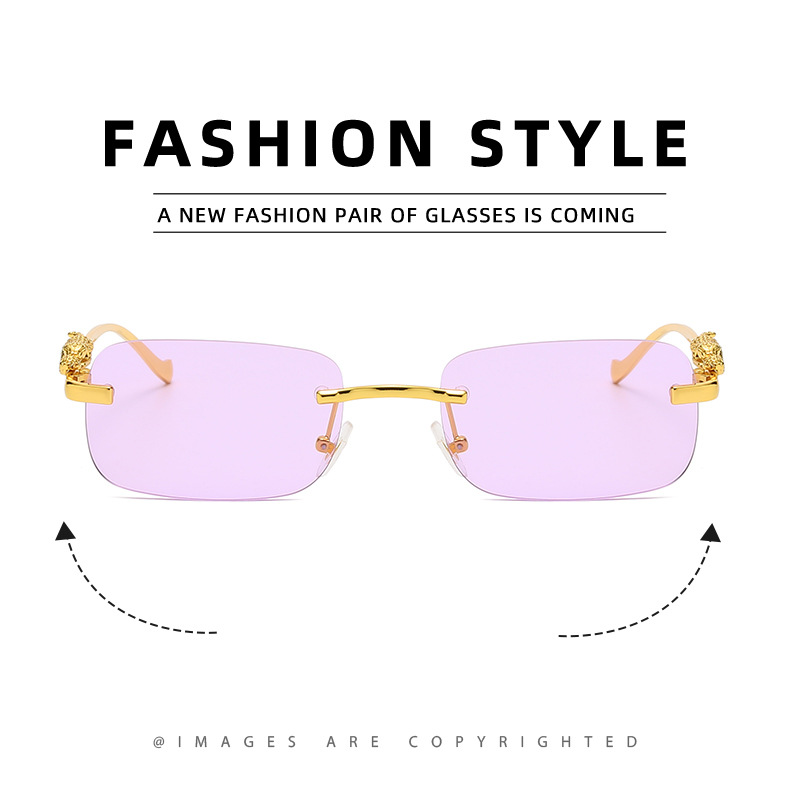 Новинка брендовые солнцезащитные очки без оправы квадратные цветные мужские и женские ретро очки с головой леопарда Металлические Модные солнцезащитные очки 2572