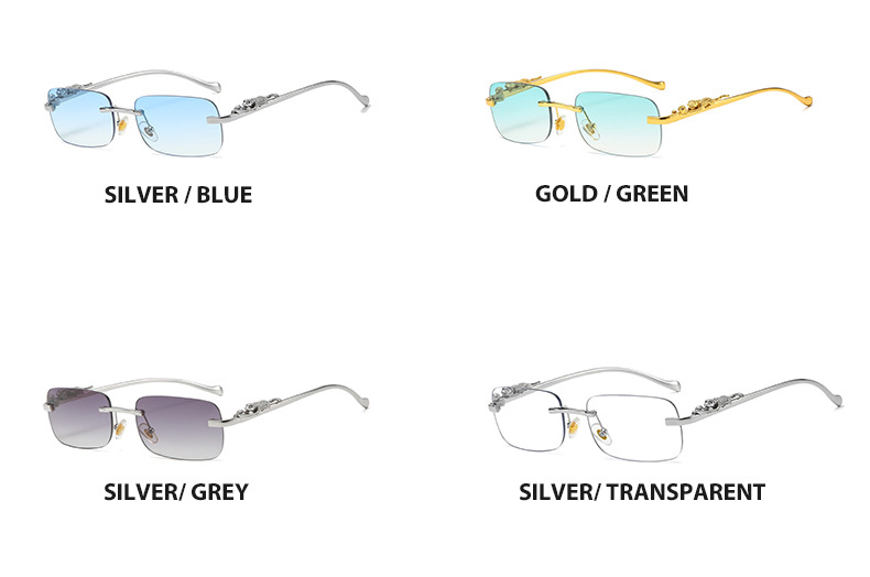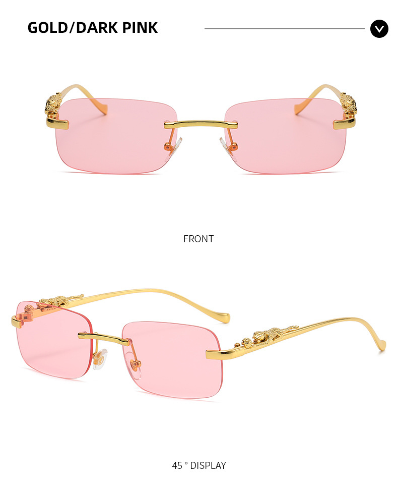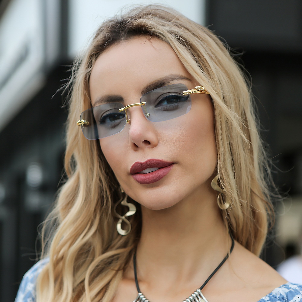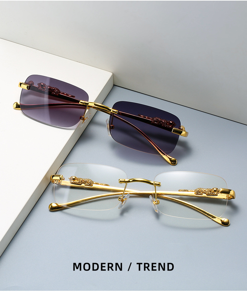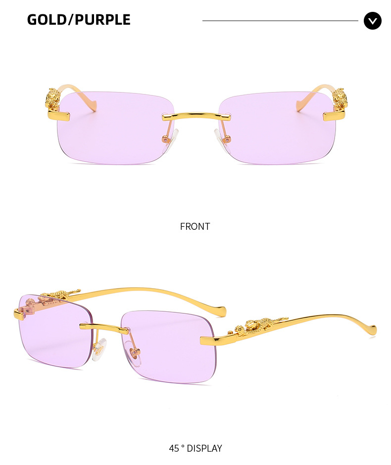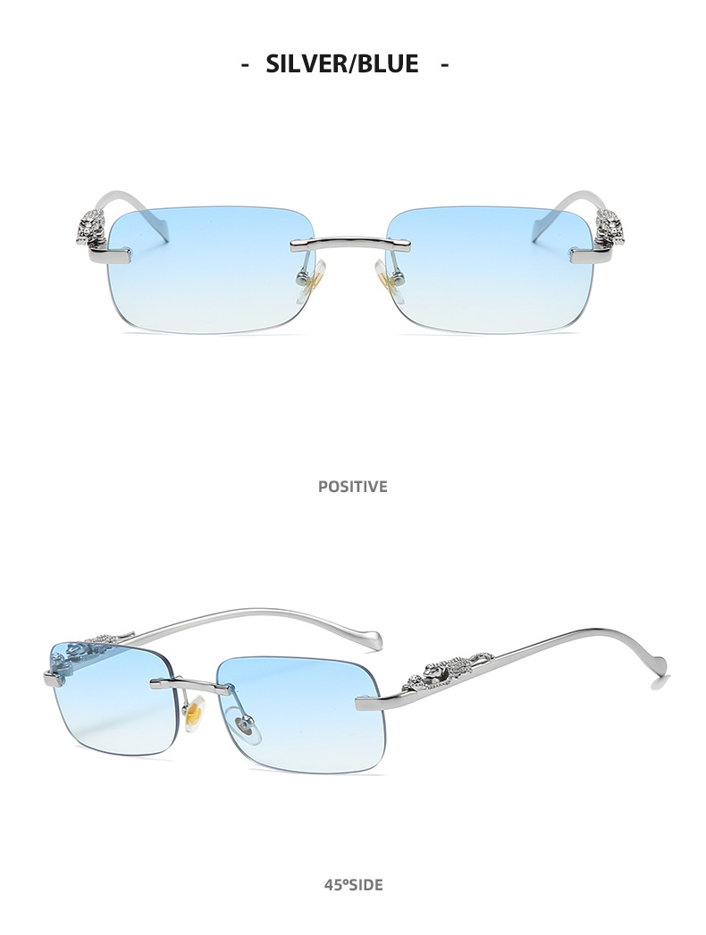 Новинка брендовые солнцезащитные очки без оправы квадратные цветные мужские и женские ретро очки с головой леопарда Металлические Модные солнцезащитные очки 2572