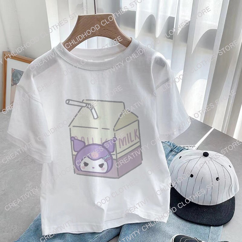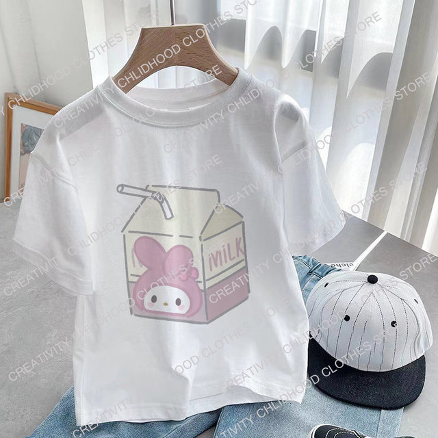 Новинка детская футболка Sanrio Kawaii футболка Hello Kitty Cinnamoroll молоко мультфильмы повседневная одежда аниме футболка детская одежда для девочек