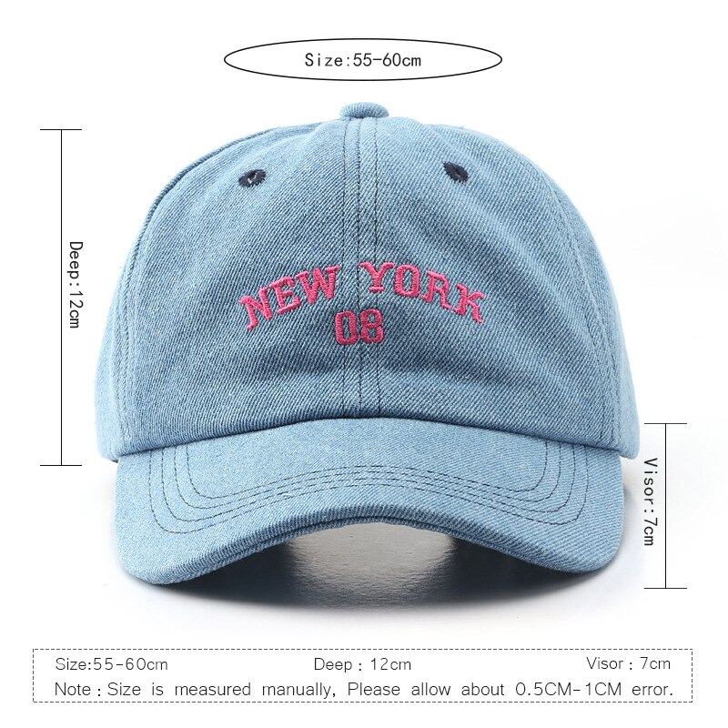 Новинка, джинсовая бейсболка, регулируемая яркость, вышитые шляпы Нью-Йорка, мягкие хлопковые летние солнцезащитные шляпы