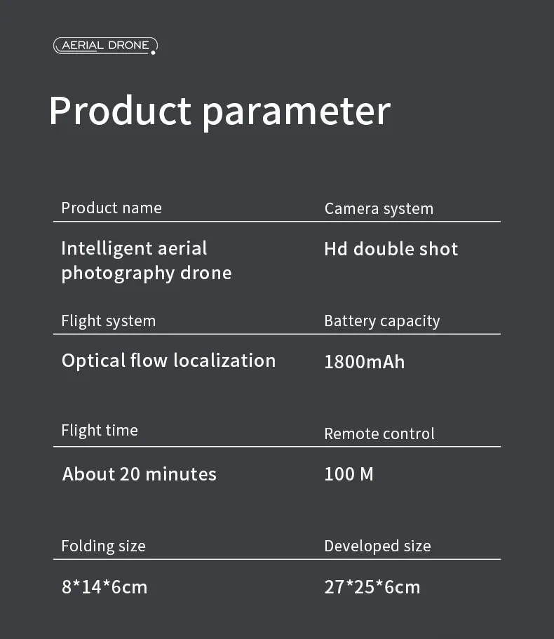 1. передний объектив помещен с широкоугольным Wi-Fi высокой четкости 4K, нижний объектив высокой четкости с оптическим потоком может переключать угол камеры,