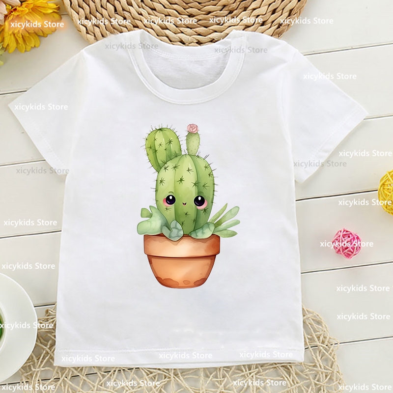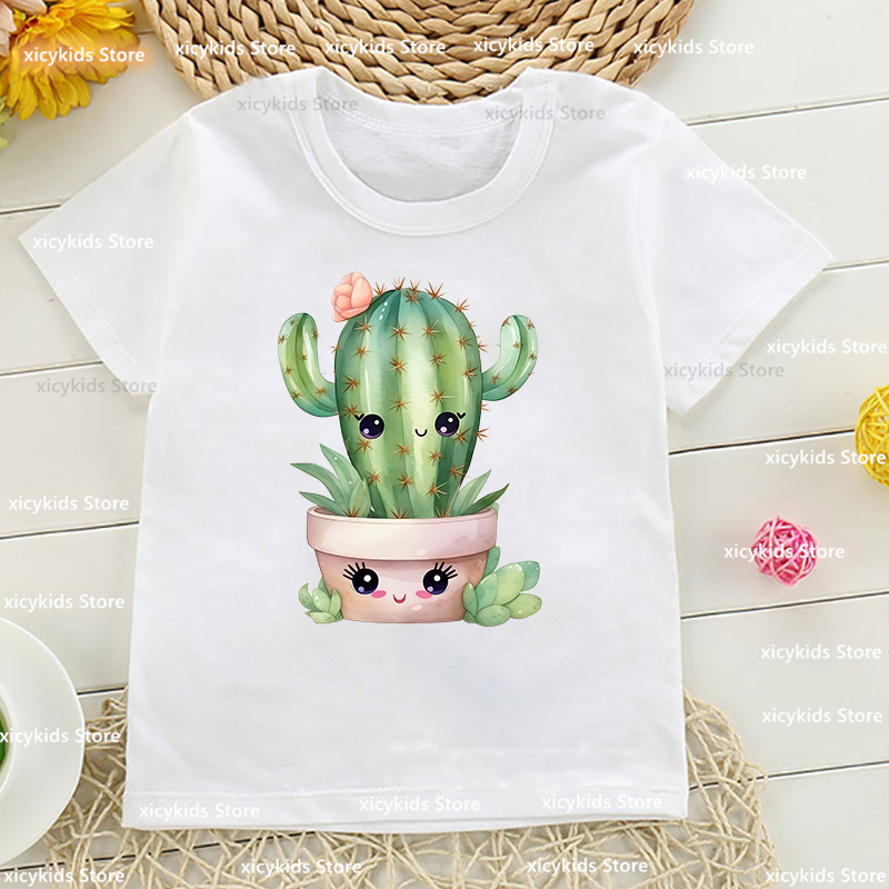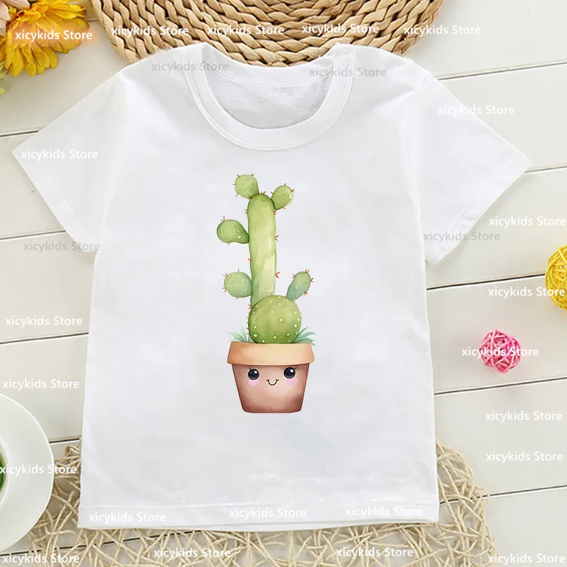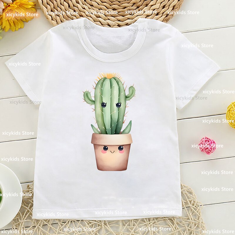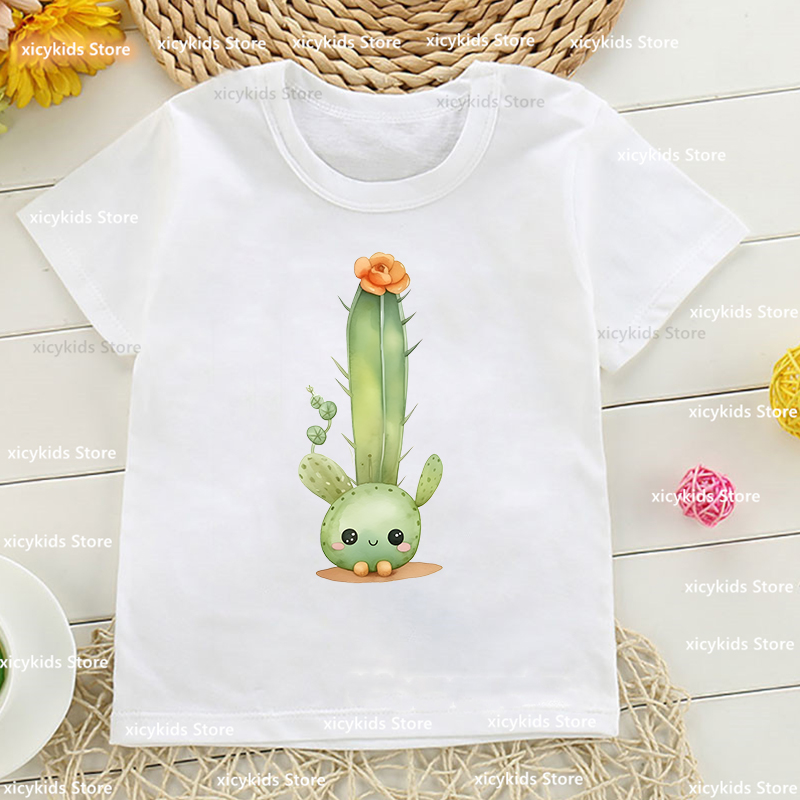 Новинка, футболка для девочек, смешные футболки с мультяшным принтом кактуса для мальчиков, летние детские футболки в стиле Харадзюку, милая универсальная одежда для мальчиков и девочек