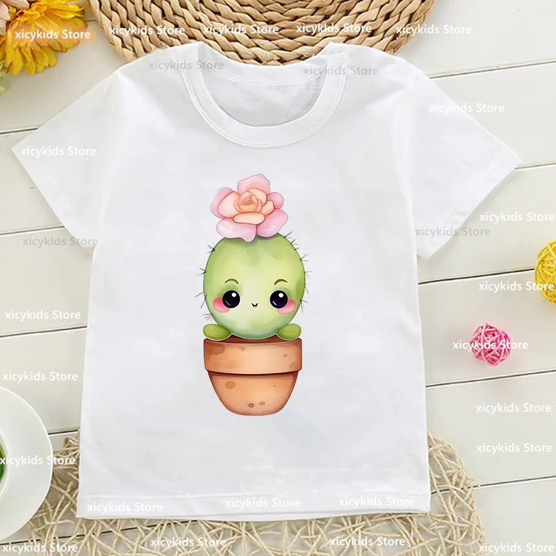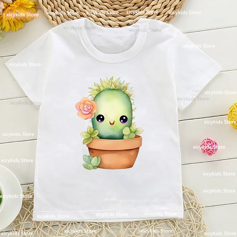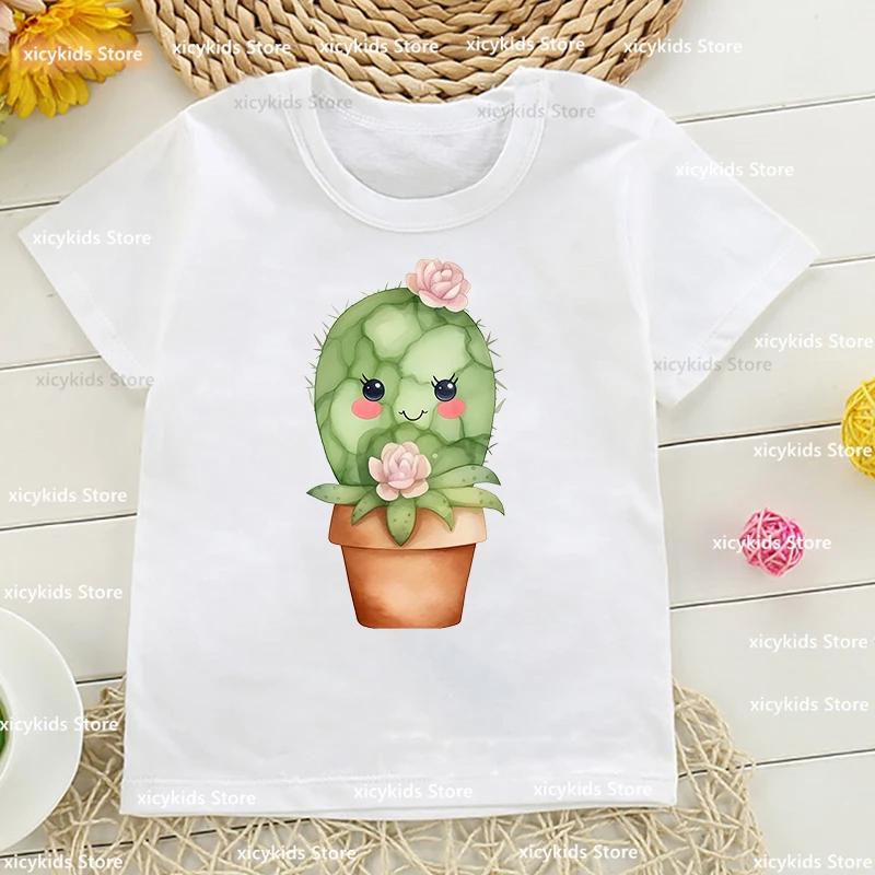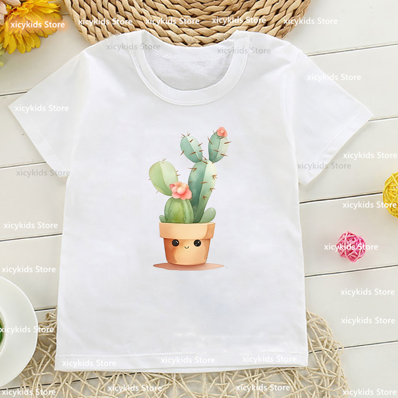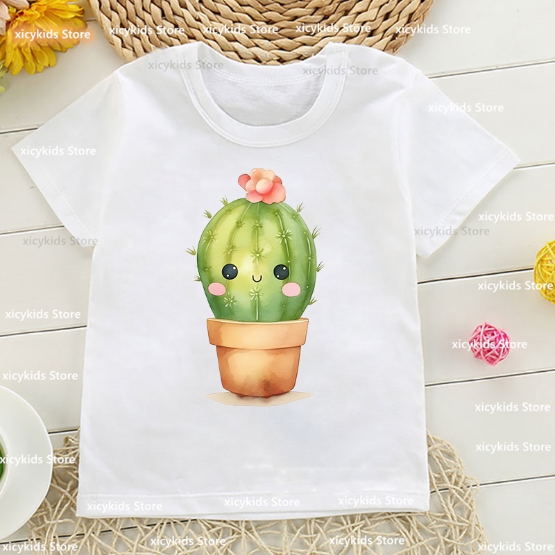 Новинка, футболка для девочек, смешные футболки с мультяшным принтом кактуса для мальчиков, летние детские футболки в стиле Харадзюку, милая универсальная одежда для мальчиков и девочек