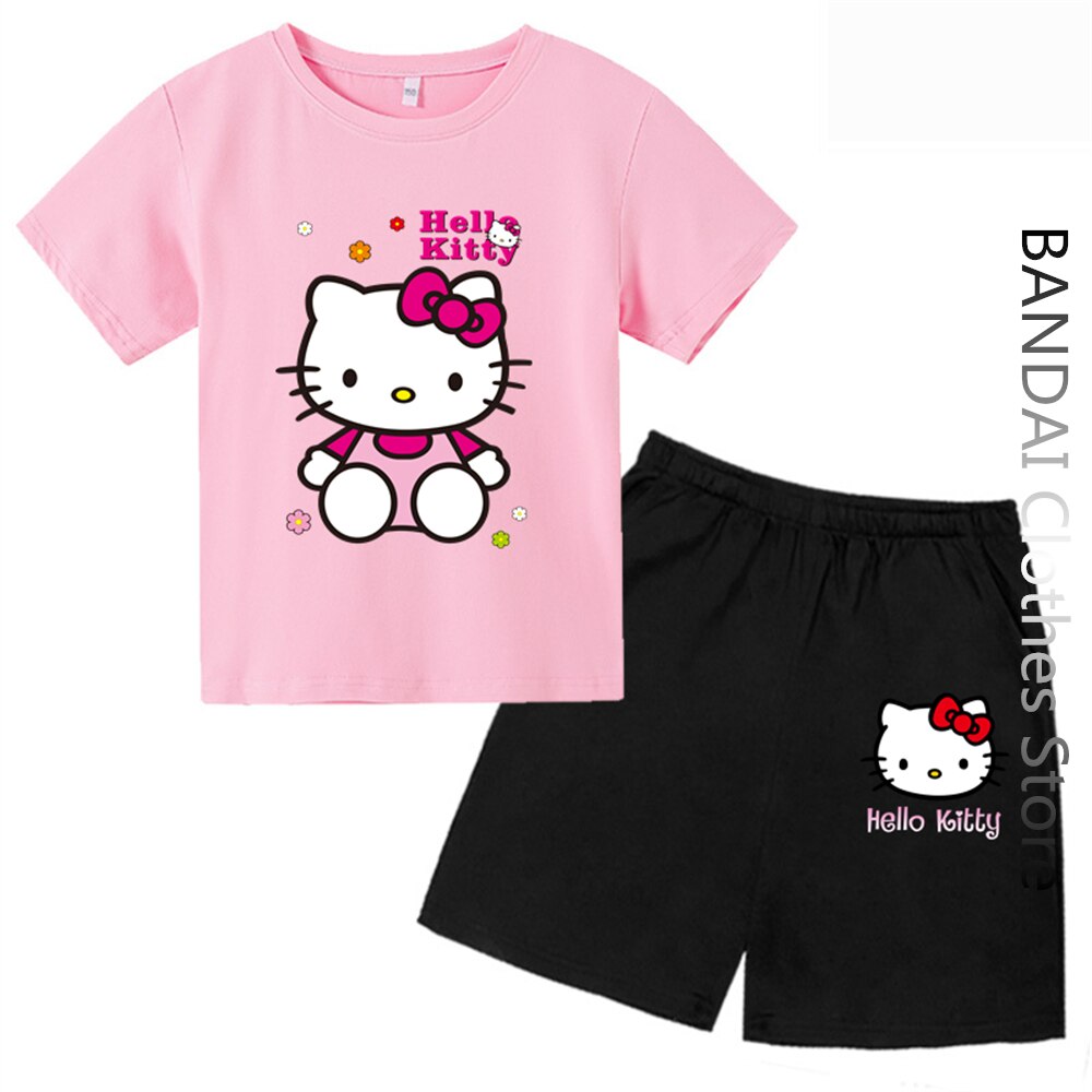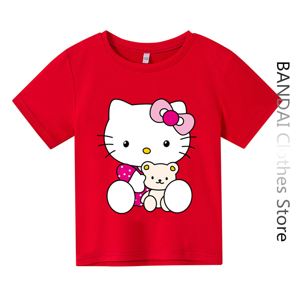 Новинка, хлопковая Футболка Hello Kitty, летняя повседневная женская футболка в стиле Харадзюку Sanrio, комплект одежды для маленьких мальчиков, топы с мультяшными персонажами Miniso для девочек