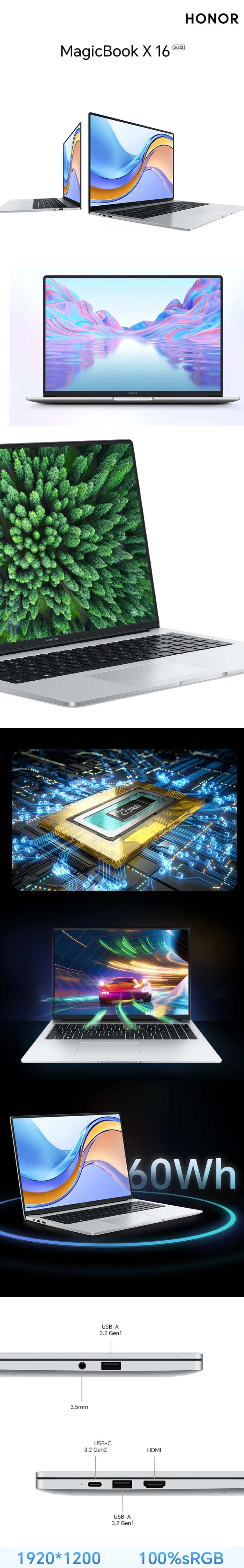 Новинка, Honor MagicBook X 16 2023, ядро 12-го поколения, стандартное напряжение, Φ 100% sRGB, тонкий аккумулятор для ноутбука