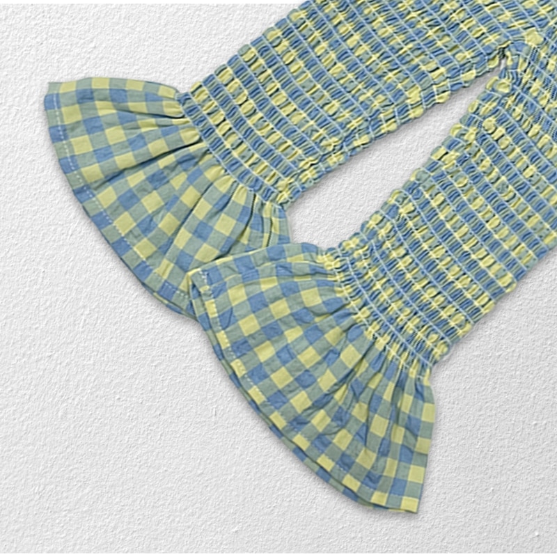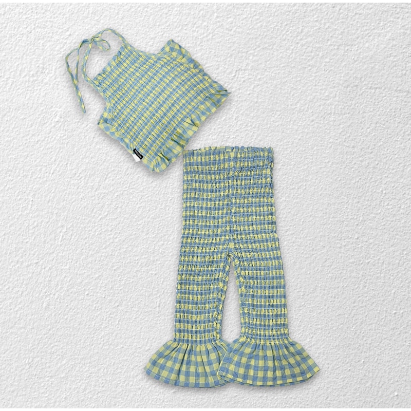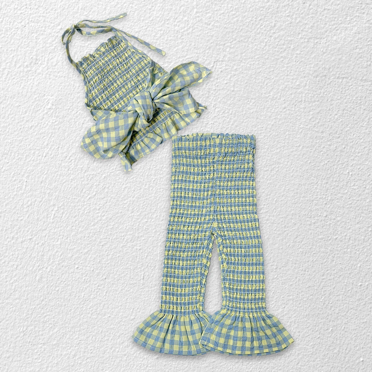 Новинка лета 2023, комплект одежды из 2 предметов для маленьких девочек: плиссированный топ на бретельках с открытой спиной и расклешенные брюки для детей, модная женская одежда