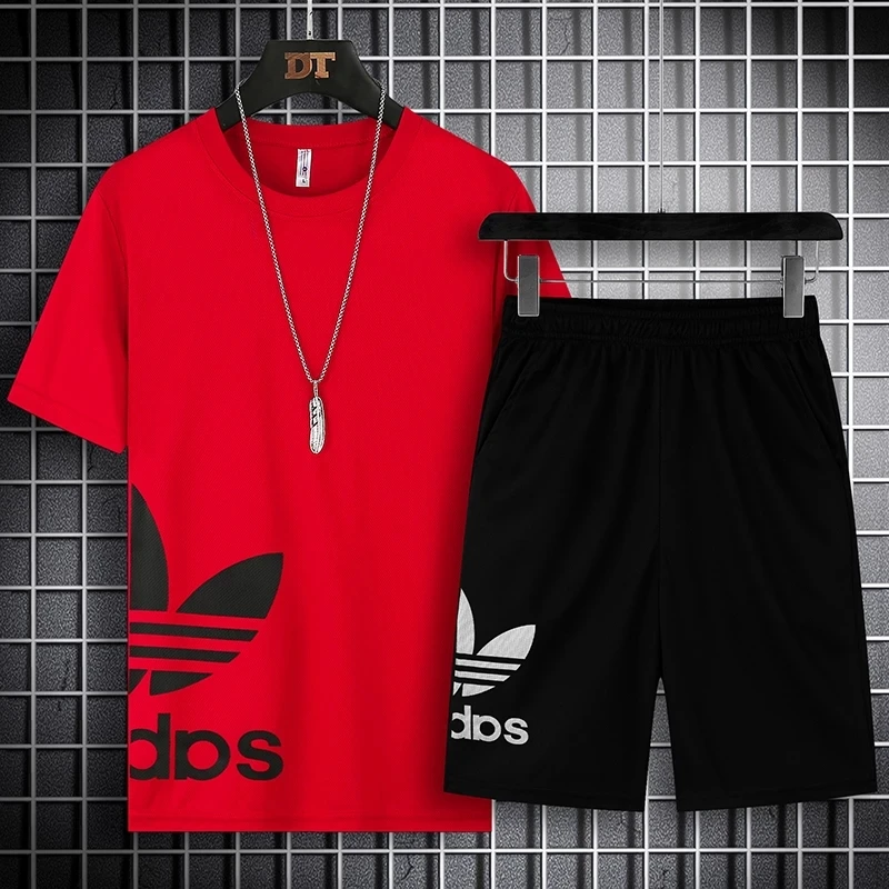 Новинка лета 2023, Модный повседневный брендовый Мужской комплект, спортивная одежда, шорты с коротким рукавом, быстросохнущая футболка, комплект из 2 предметов