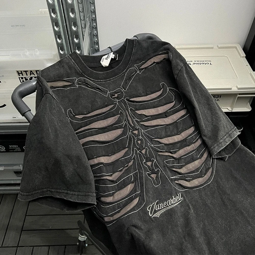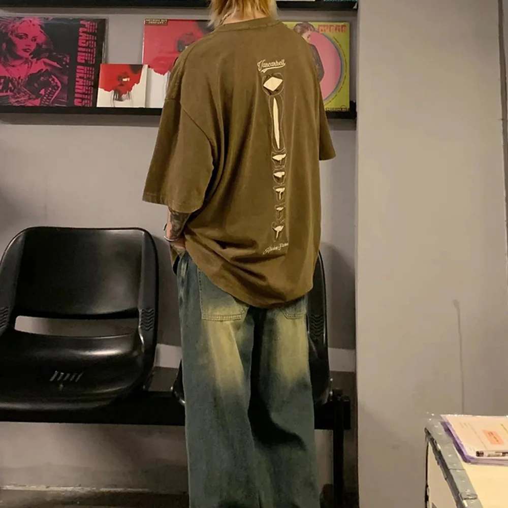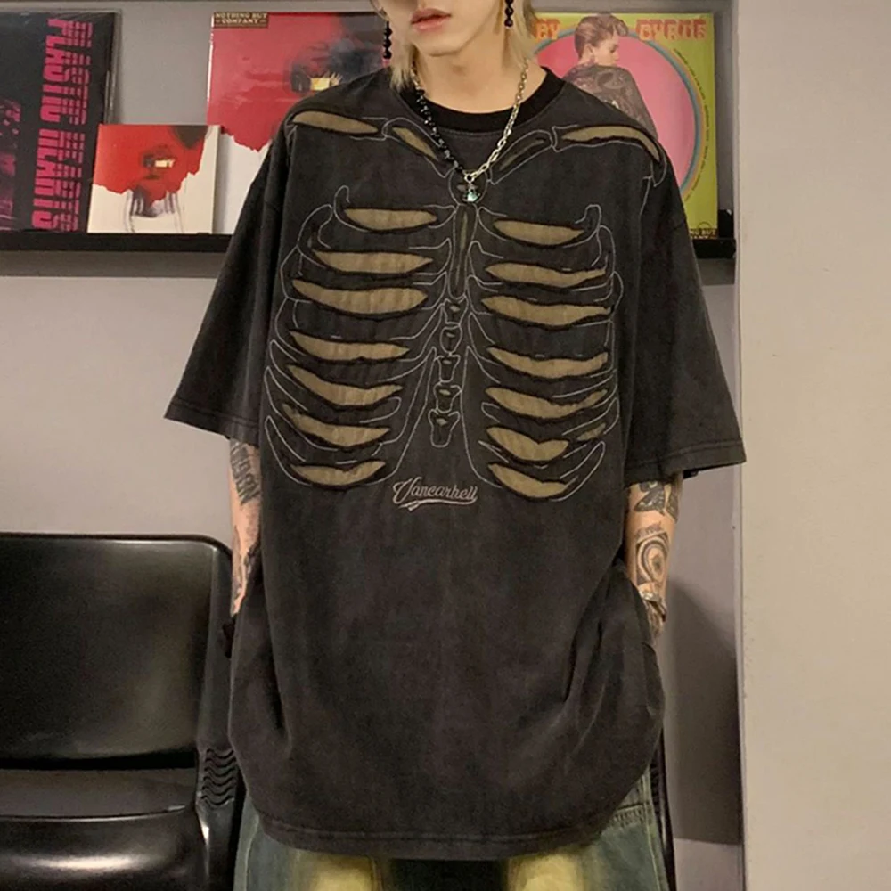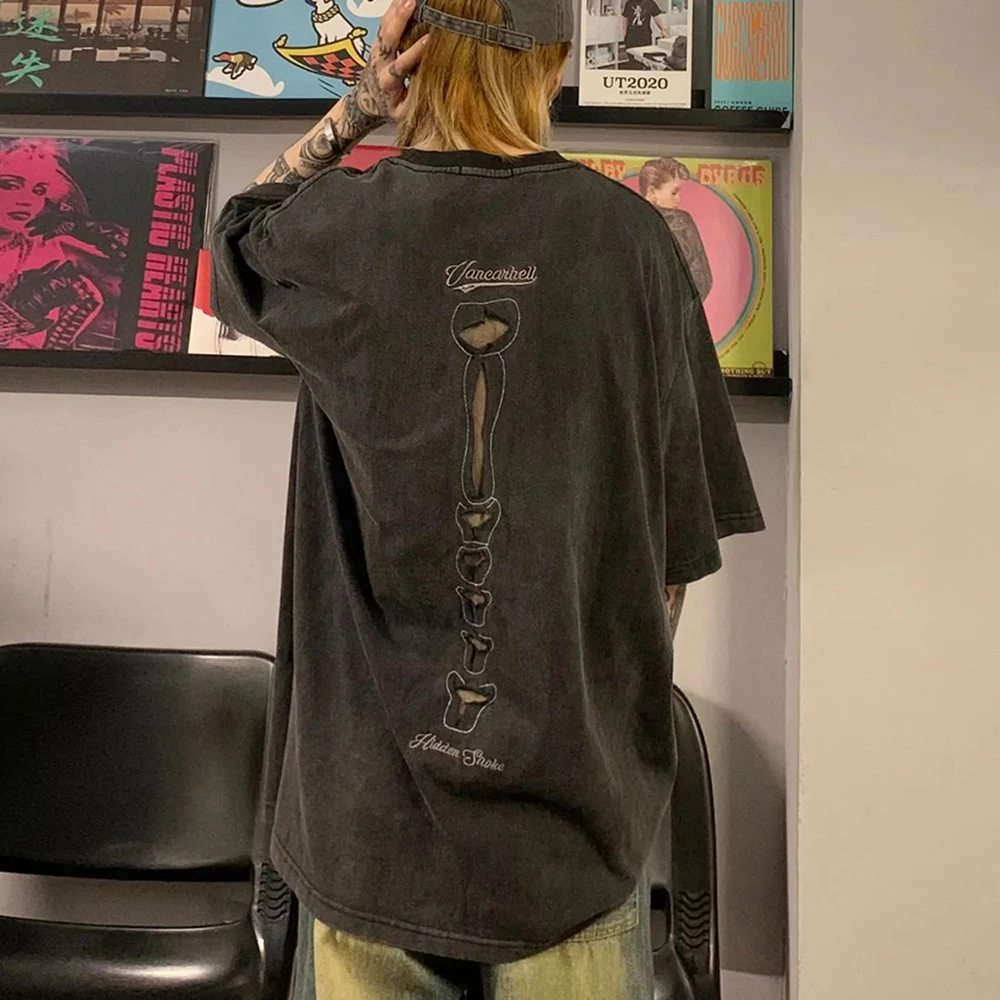 Новинка лета 2023, стильный Повседневный Свободный Топ с коротким рукавом и черепом в стиле ретро