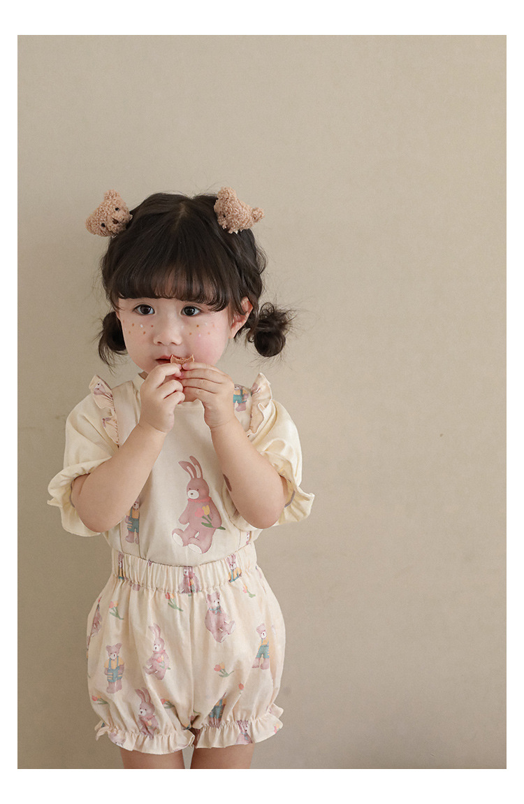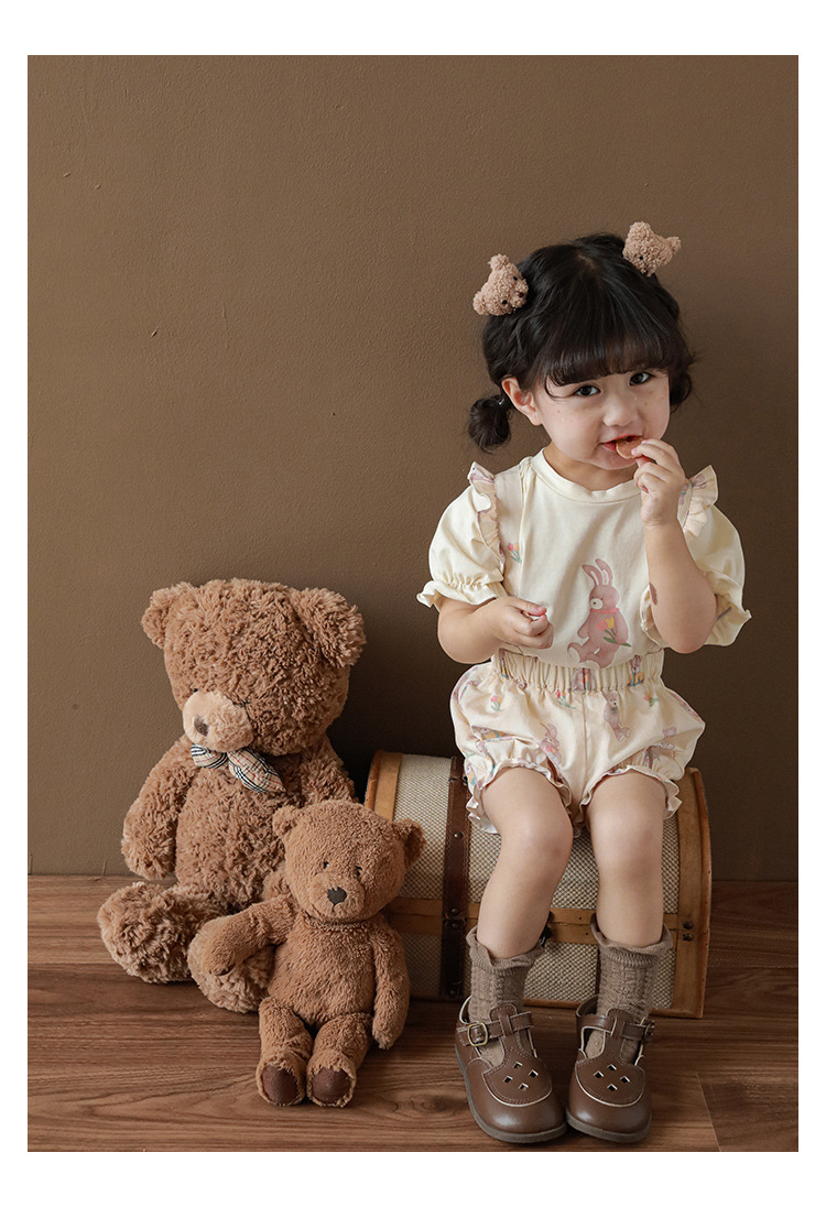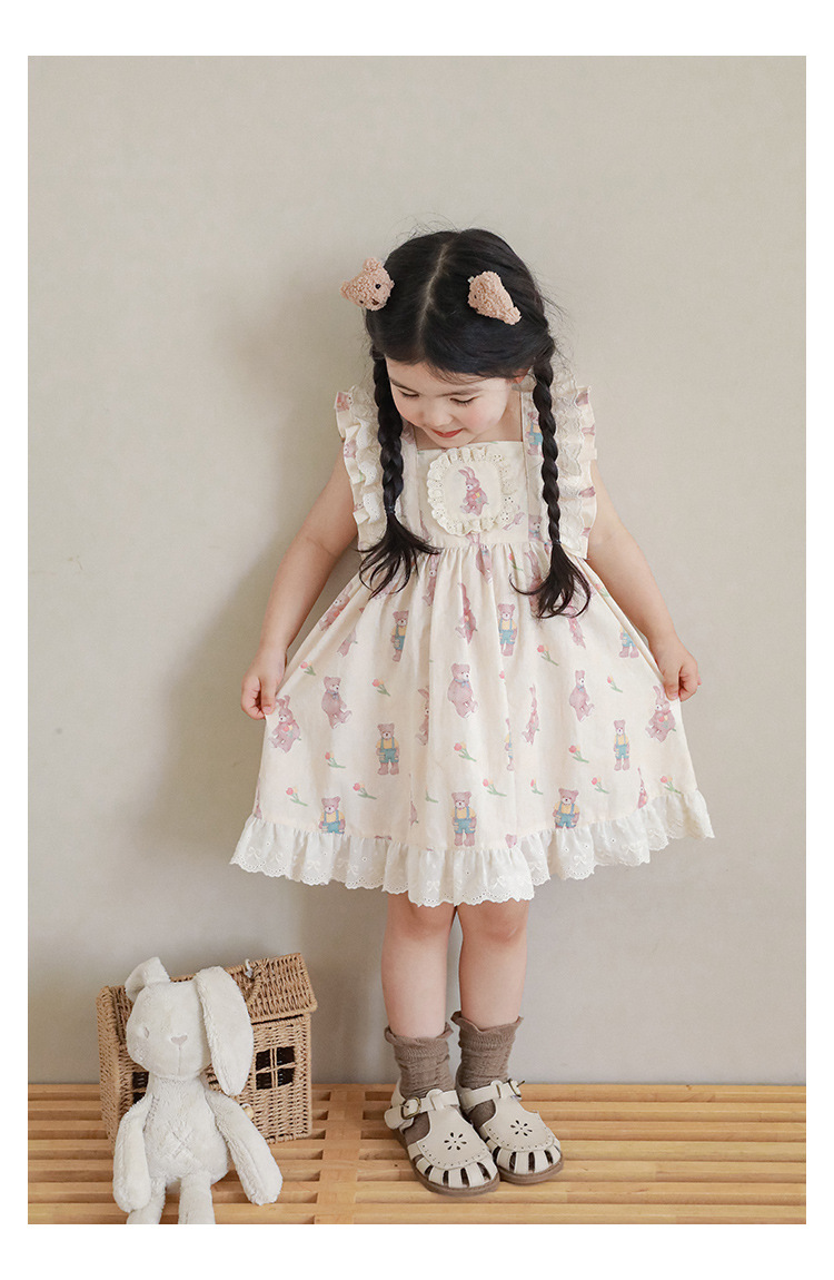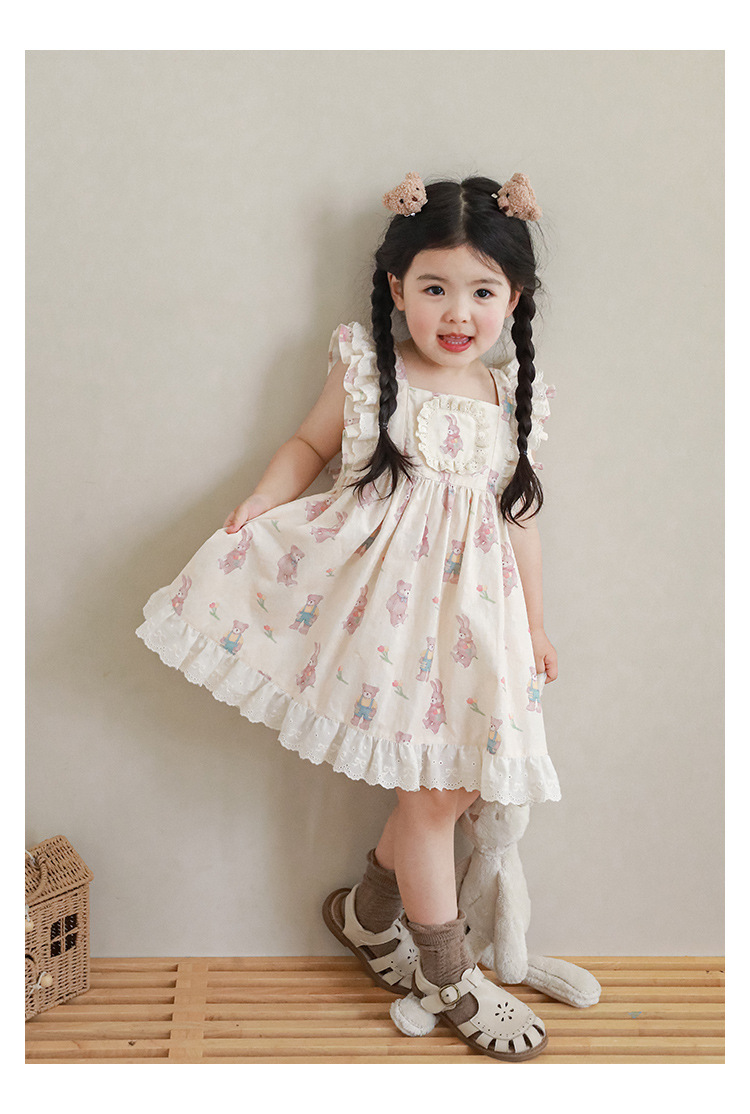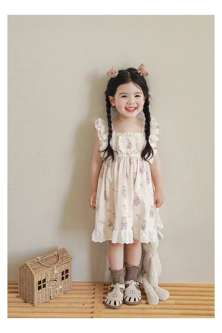 Новые летние Мультяшные Детские комплекты для девочек-футболка с короткими рукавами и шорты на подтяжках и кружевное платье с летными рукавами E0234