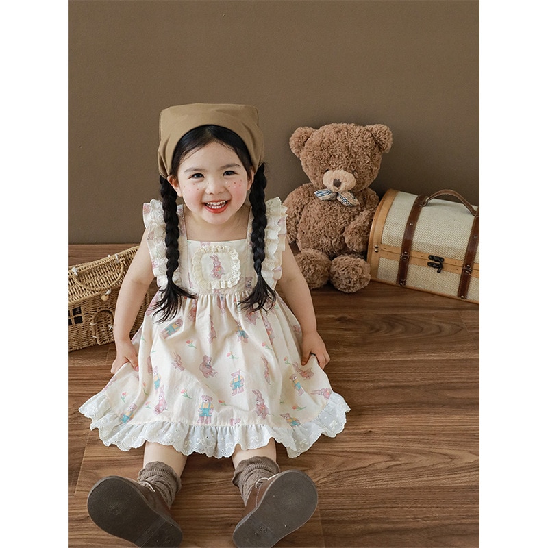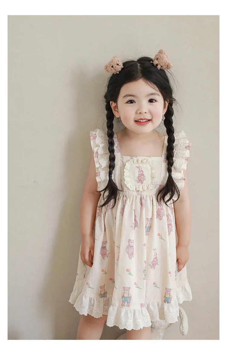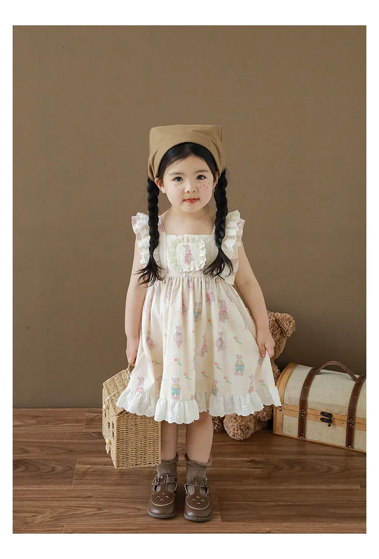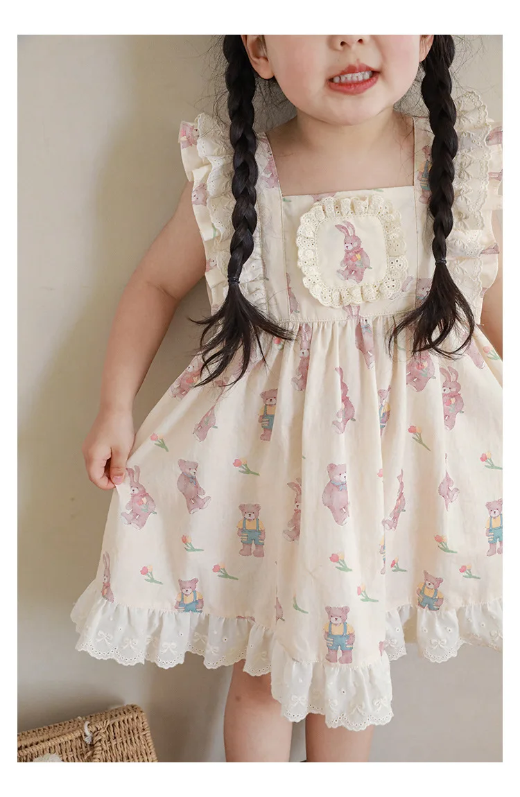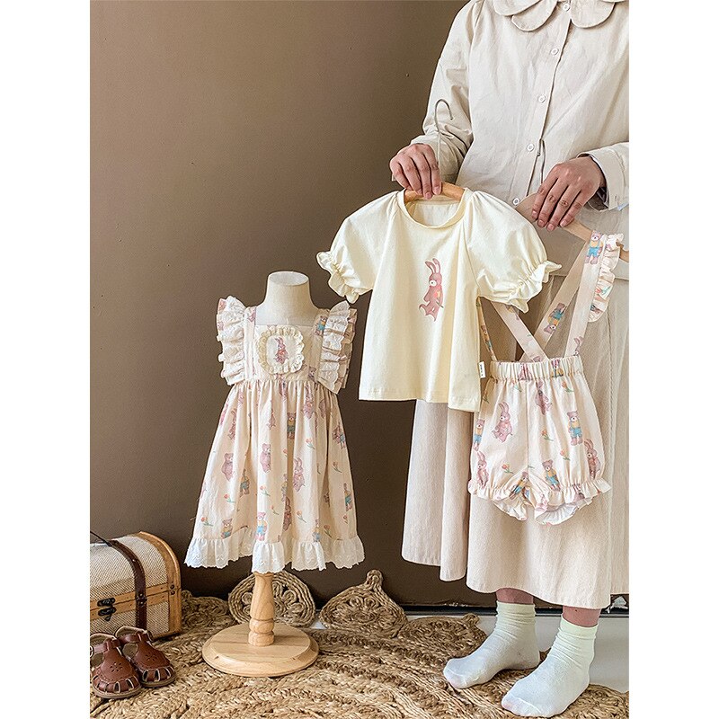 Новинка летние детские комплекты с мультяшным рисунком для девочек-футболка с коротким рукавом и шорты на бретелях и кружевное платье с летним рукавом E0234