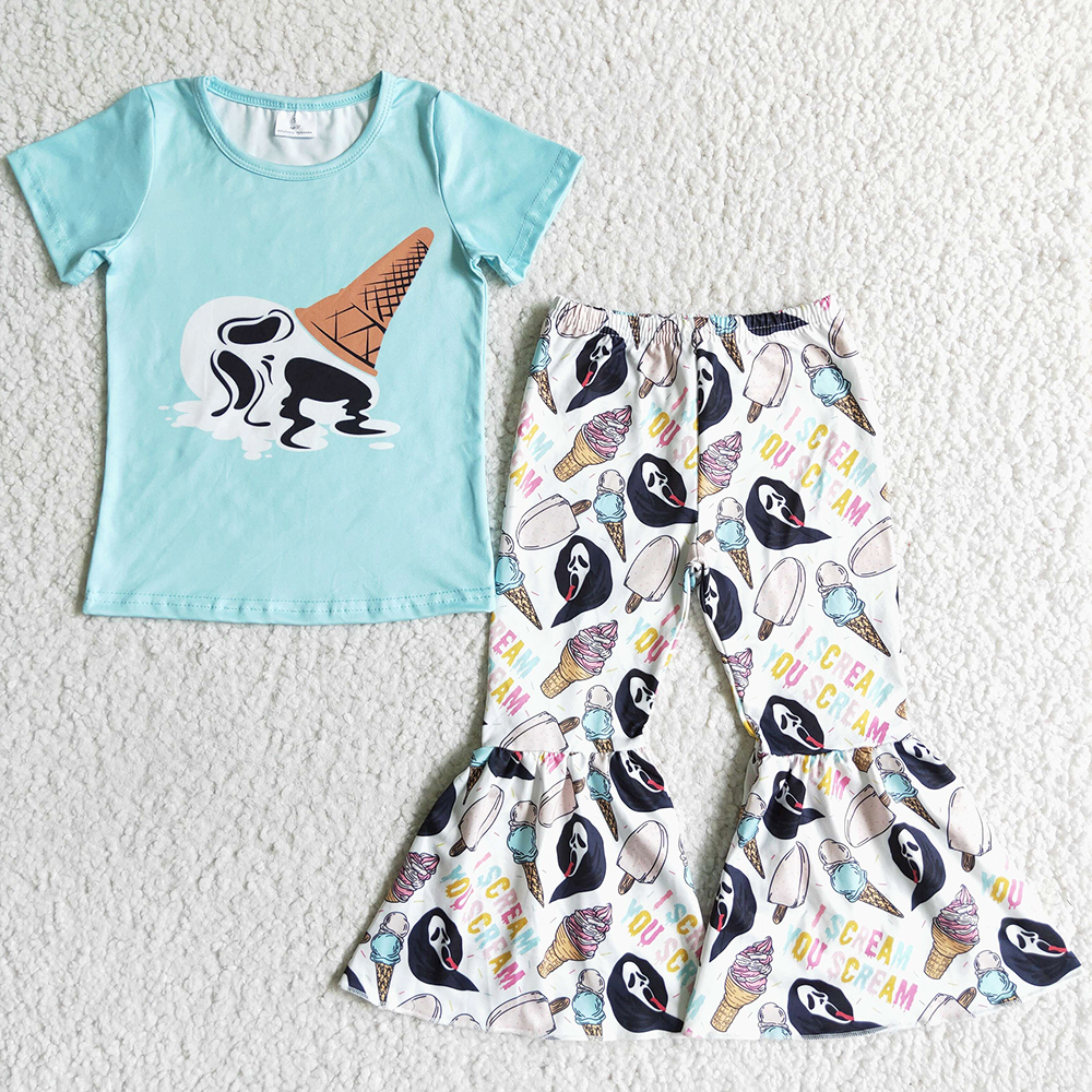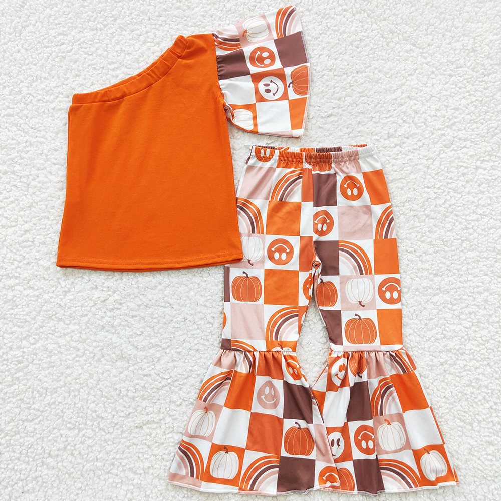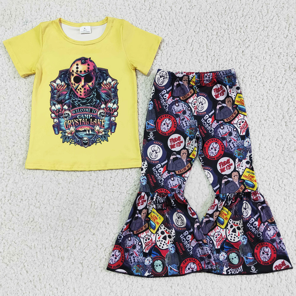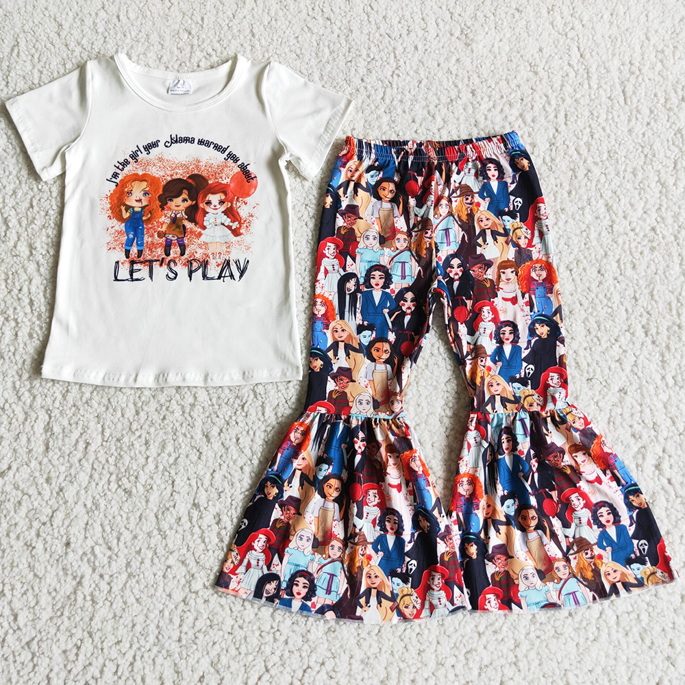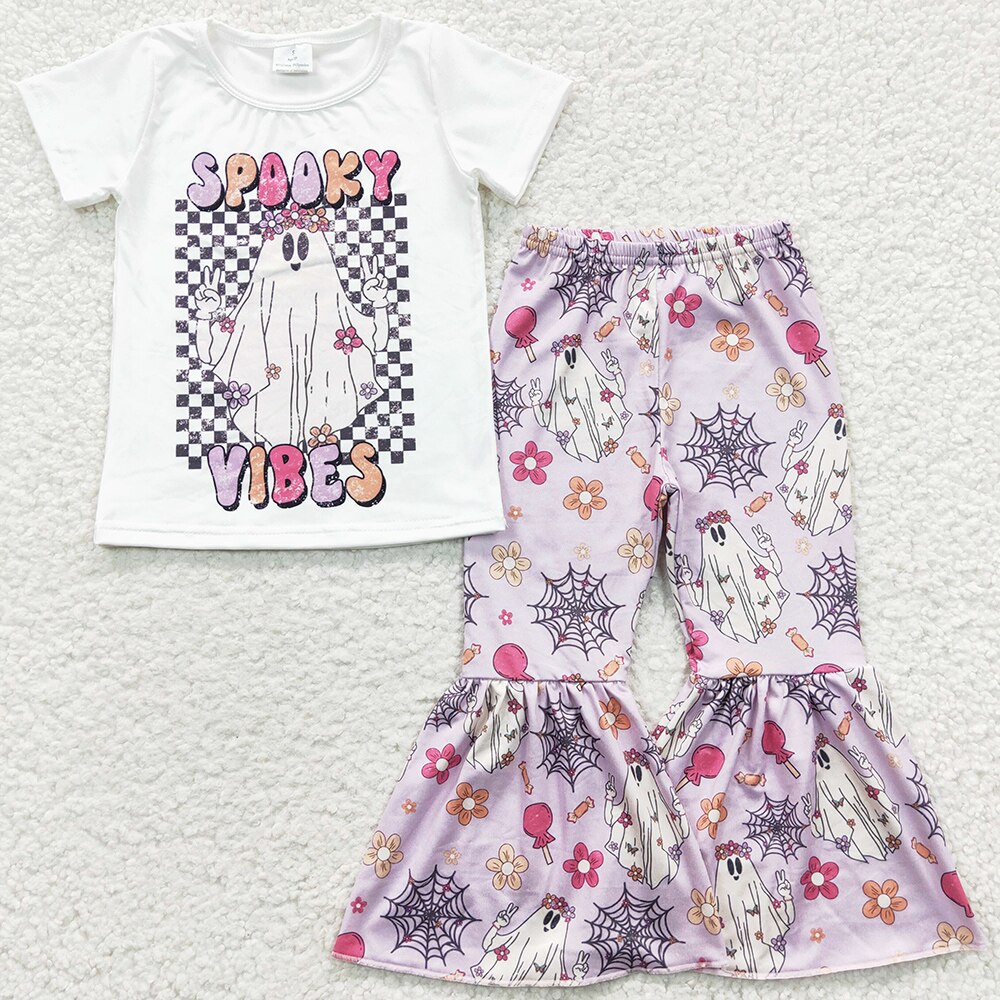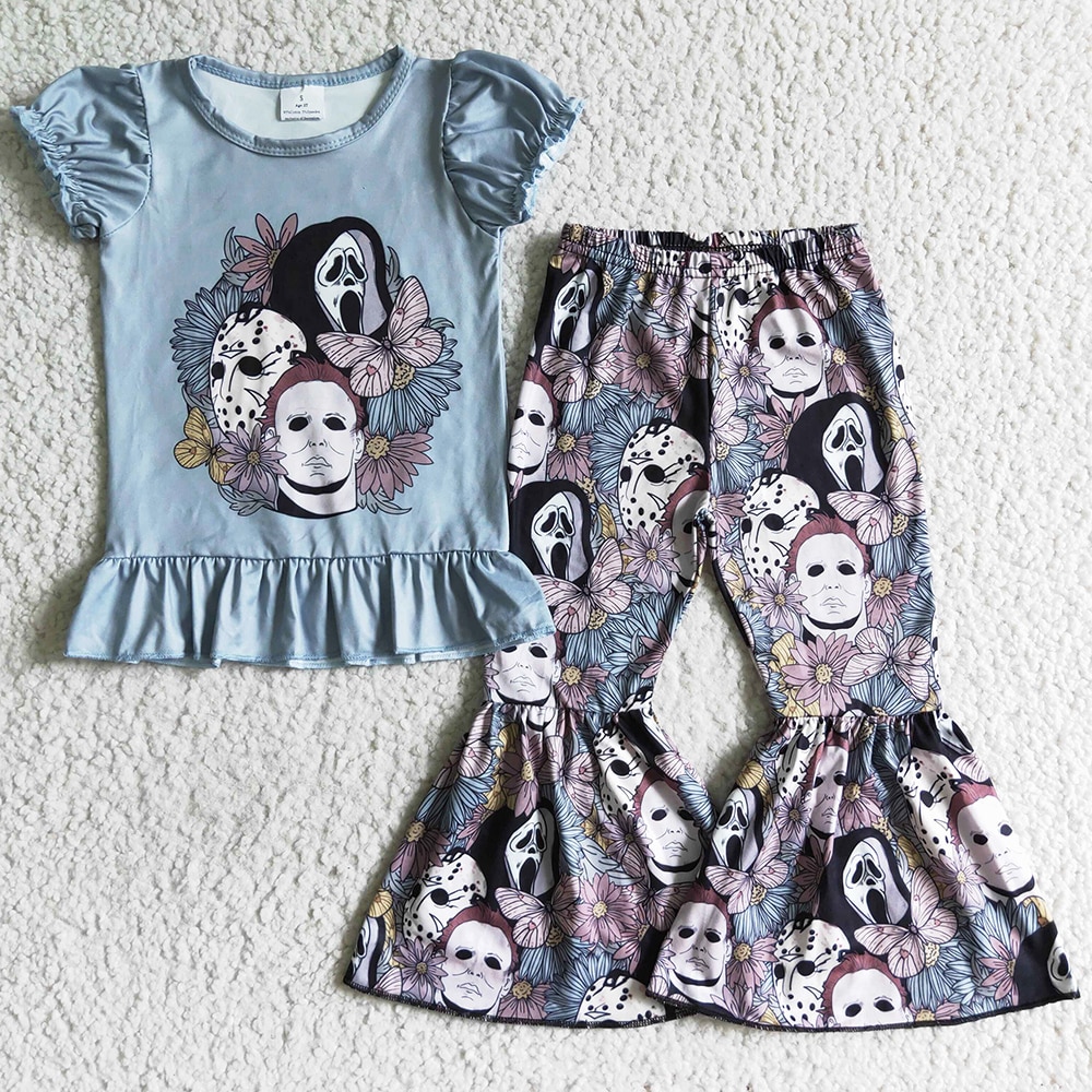 Новинка, модная одежда для маленьких девочек, костюмы с колокольчиками на Хэллоуин, бутиковая детская одежда из молочного шелка, комплекты с короткими рукавами для девочек, Лидер продаж