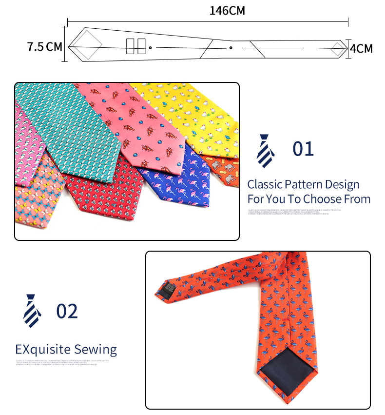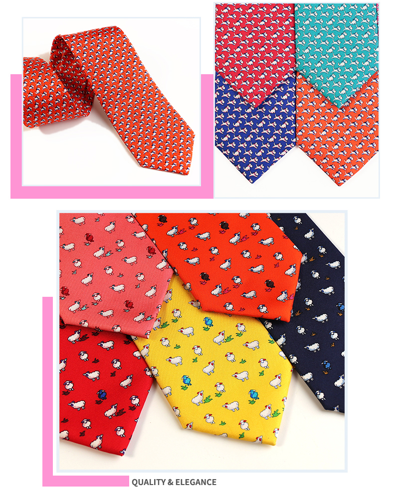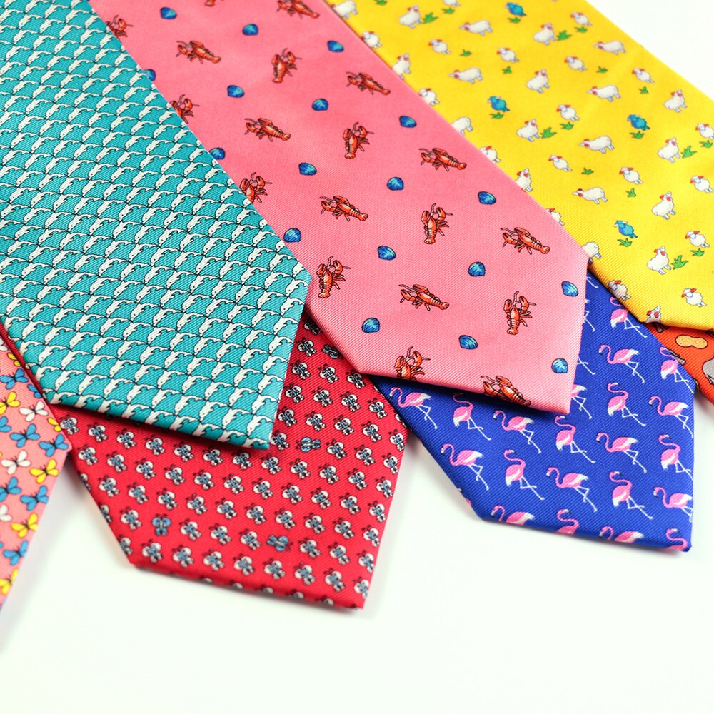 Новинка модные галстуки из 100% шелка с принтом в виде животных, галстук с рисунком фламинго, собаки, овцы, мужской костюм с рисунком для отдыха, галстук