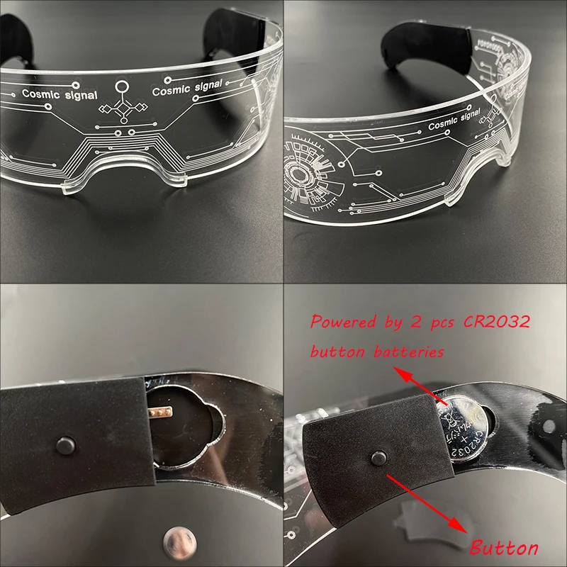 Для B-I стиля. Светодиодные очки управляются с двух сторон. Нажмите левую кнопку изменения цвета, светодиод сработает.