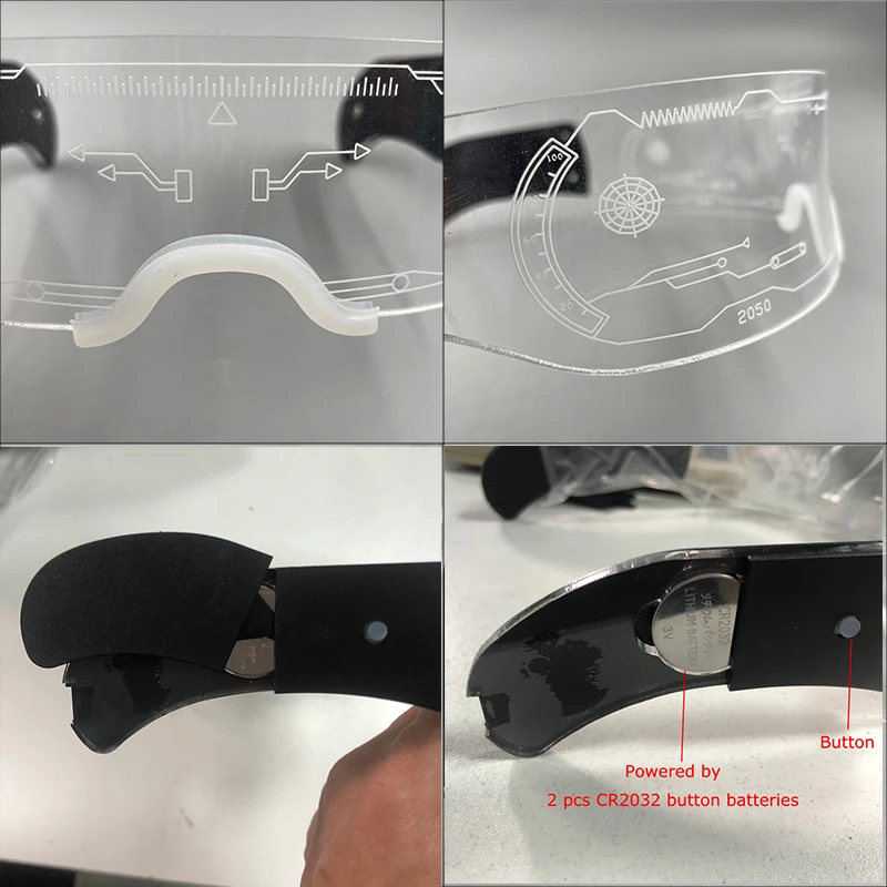 Для стиля A, когда вы открываете очки, светодиодные очки автоматически меняют цвет.