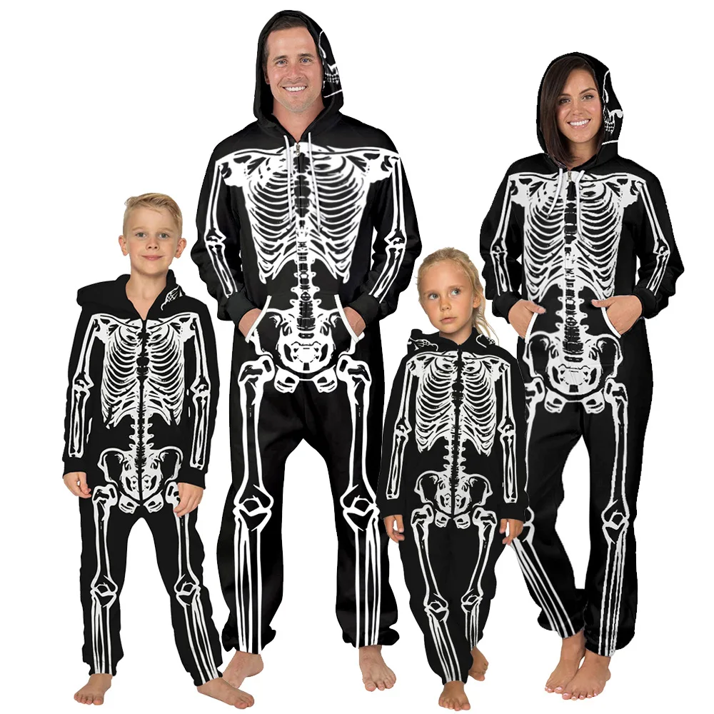 Новинка, модный костюм VIP для родителей и детей, костюм на Хэллоуин, с рисунком черепа и скелета, свободная Детская Пижама