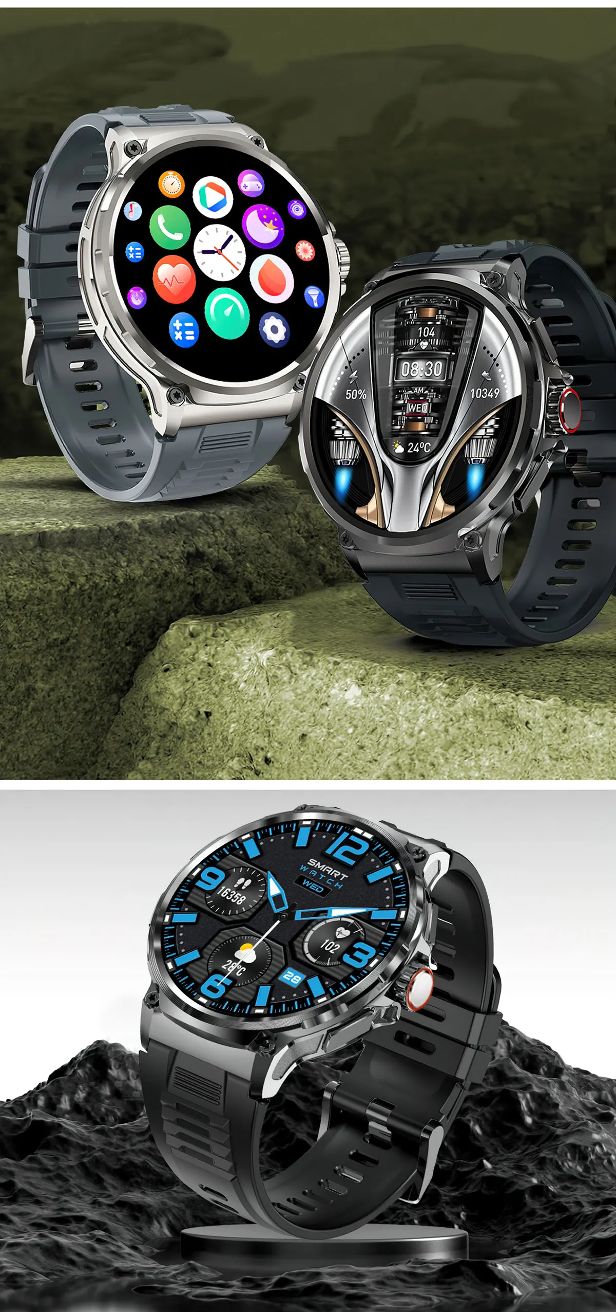 Умные часы COLMI V69 предназначены для сильных людей, диаметр часов составляет 52 мм, в них используются высококачественные материалы из цинкового сплава военного класса.