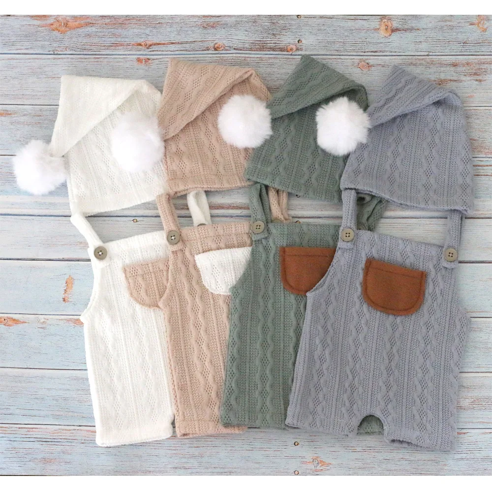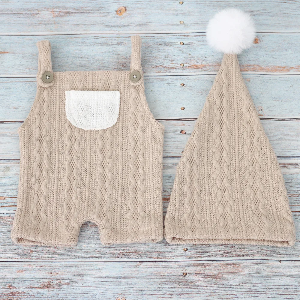 Новинка, одежда для фотосъемки с перекрестными краями, одежда для фотосъемки новорожденных, Детский комплект из шапки с плюшевыми шариками и шорт на ремешке