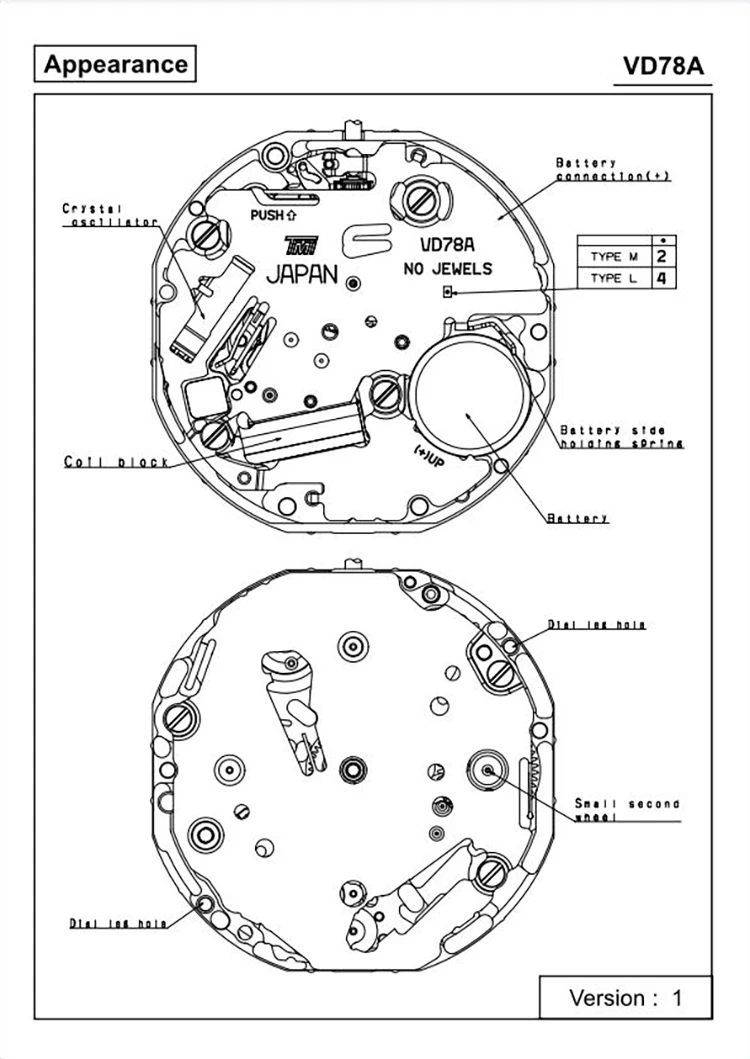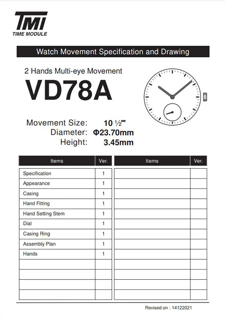 Новинка, оригинальные японские кварцевые часы TMI VD78A hatдори с двумя ручками, механизм VD78, маленькие секундные часы в масштабе 6:00, мультиглаза 6G28, дата в масштабе 6:00