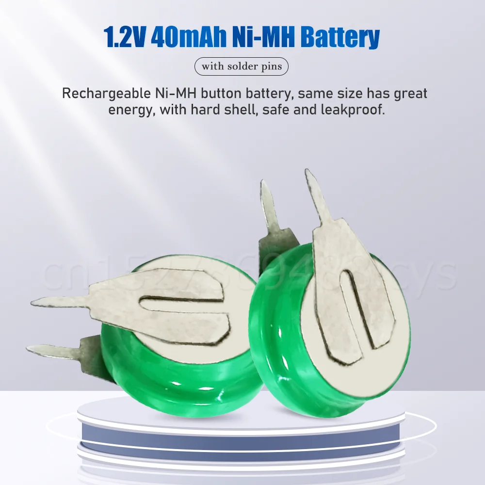 Новый 1,2 В 40 мАч Ni-MH перезаряжаемый кнопочный монетоприемник со сварочными штифтом для солнечного оборудования, календарь слухового аппарата, светодиодная игрушка