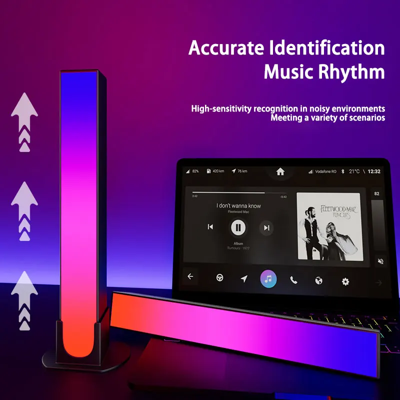 1. Встроенный высокочувствительный пикап, собирает внешние звуковые сигналы, светильник можно синхронизировать с музыкой или звуком на экране, ослепительные цвета добавят в вашу комнату больше глубины цвета, создание увлекательного и веселого игрового опыта