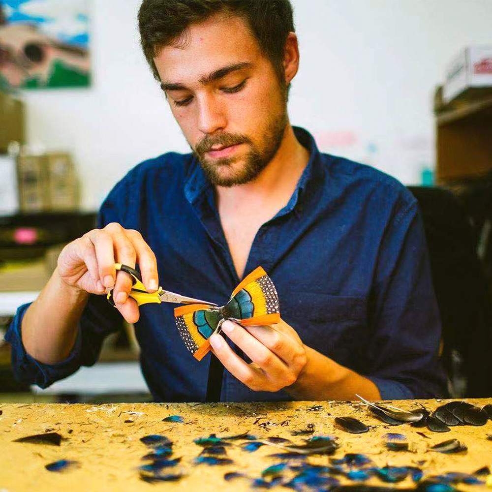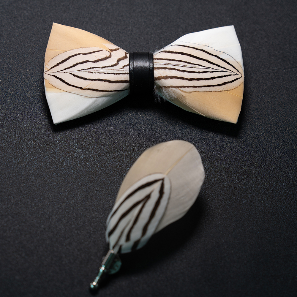 4. Перья для галстуков-бабочек выбираются вручную, что придает каждому готовому изделию уникальную окраску.