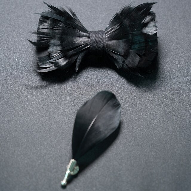 Новинка, роскошный свадебный галстук-бабочка для мужчин, классический черный предпривязанный стандартный набор, искусственное перо, галстук-бабочка, подарок, мужские аксессуары