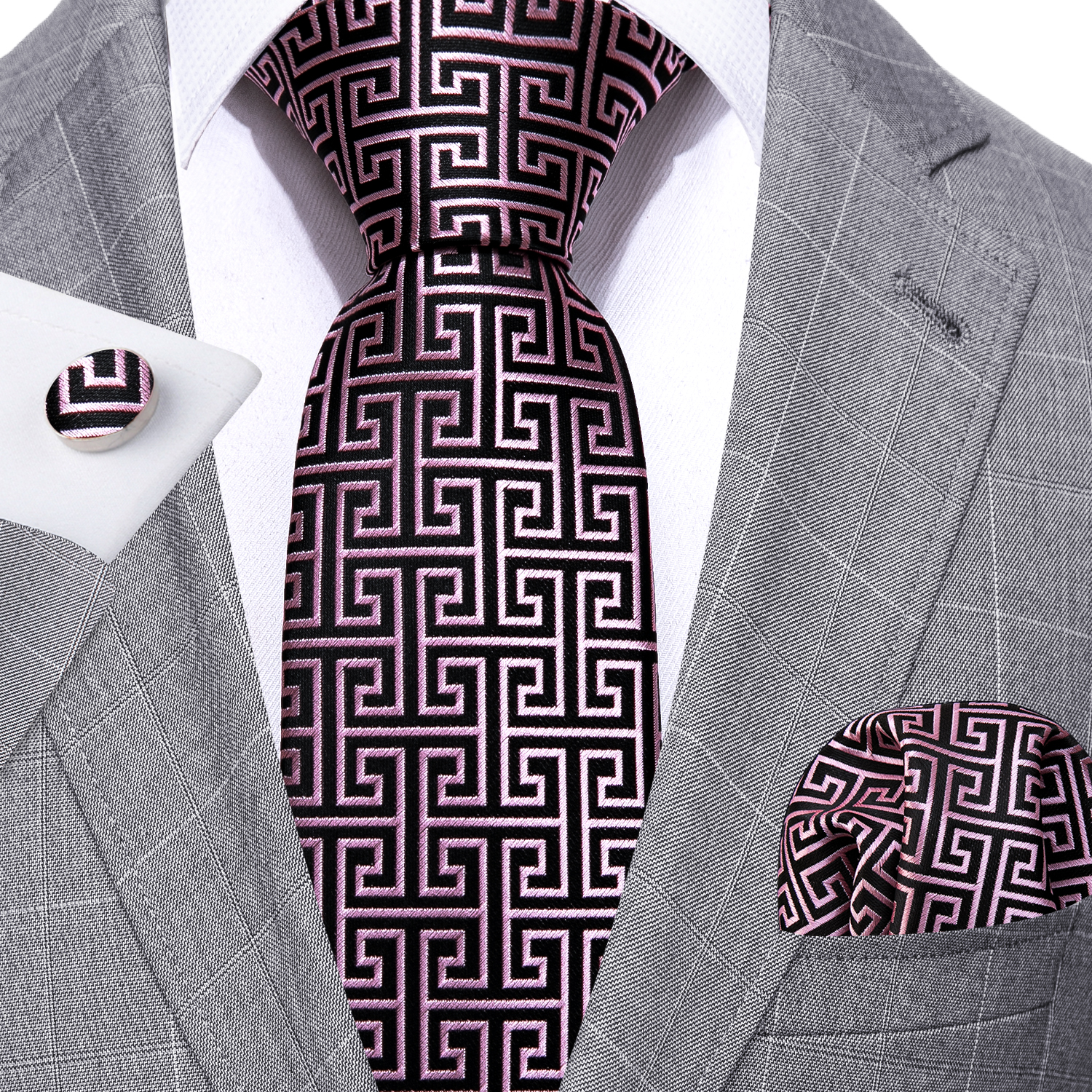 Новинка, розовый мужской галстук 8,5 см, шелковые галстуки, Свадебный деловой носовой платок, запонки, галстуки для мужчин, подарочный набор, стиль Барри Ван