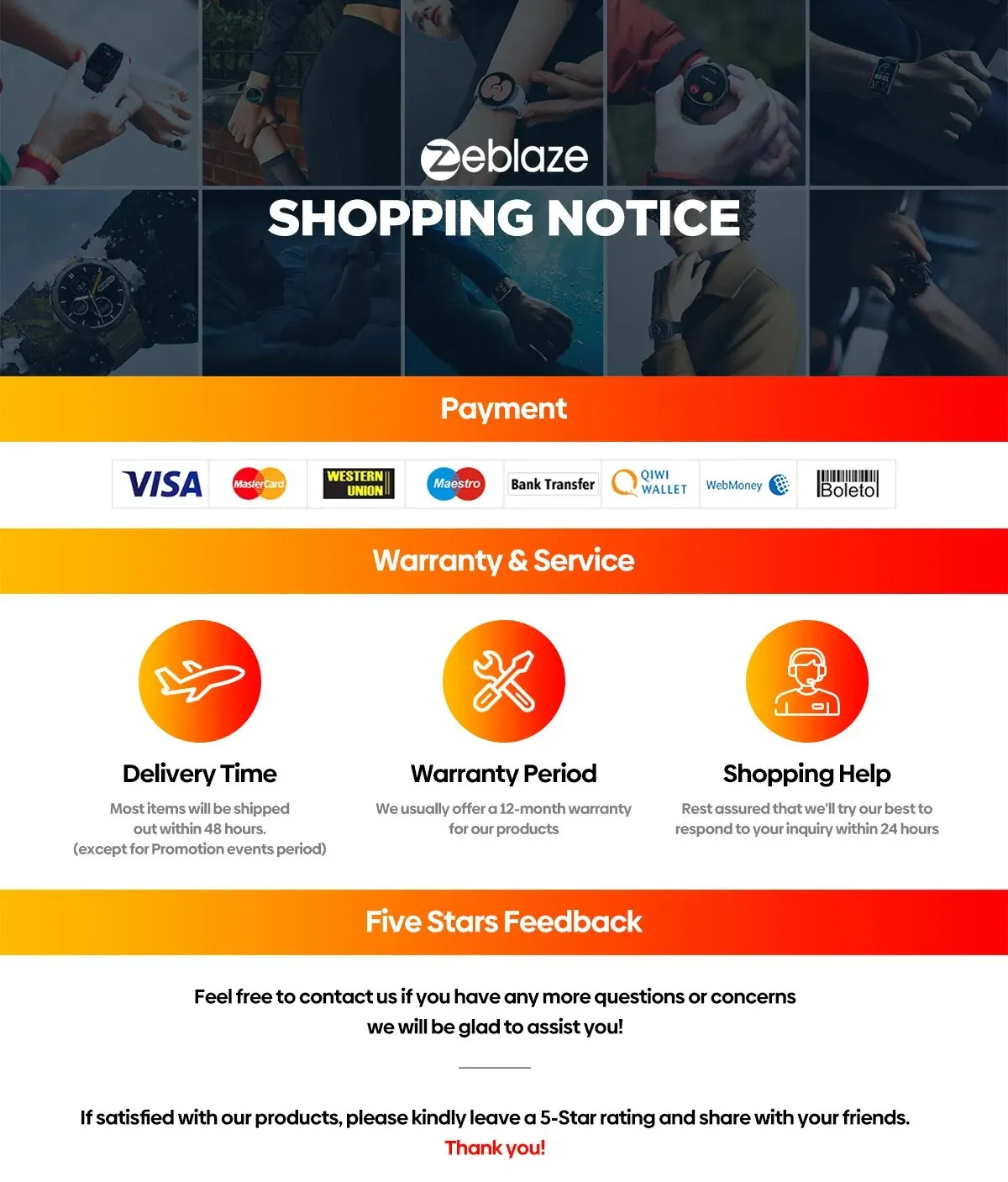 Zeblaze-ведущий мировой бренд умных Носимых устройств, предлагающий обширный портфель продуктов, включая устройства для здоровья и фитнеса, такие как умные часы и умные браслеты. Суть нашего бренда-повышение уровня вашего здоровья и фитнеса. Мы считаем, что вы с большей вероятностью достигнете своих целей, если вас поощряют веселиться, улыбаться и чувствовать себя уполномоченными на этом пути. С момента своего создания в 2015 году Zeblaze имеет годовую производственную мощность более 10 миллионов устройств и продает свою продукцию в более чем 100 странах и регионах. Для получения дополнительной информации, visi T www.zeblaze.com
