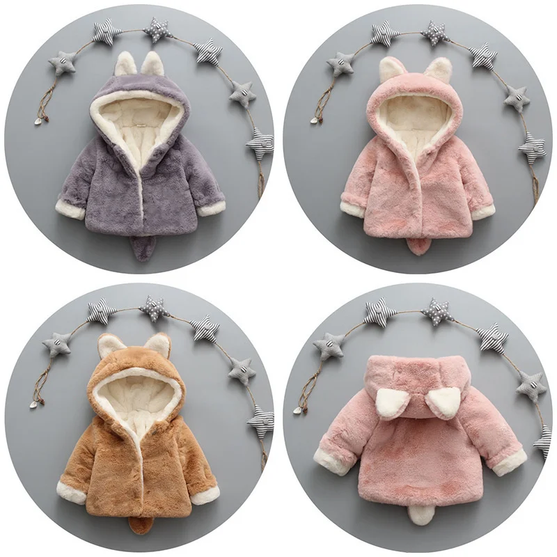 Новинка, теплая флисовая верхняя одежда для девочек, плюшевое утепленное пальто, детская одежда, куртки для маленьких девочек, зимние куртки с капюшоном, хлопковые пальто