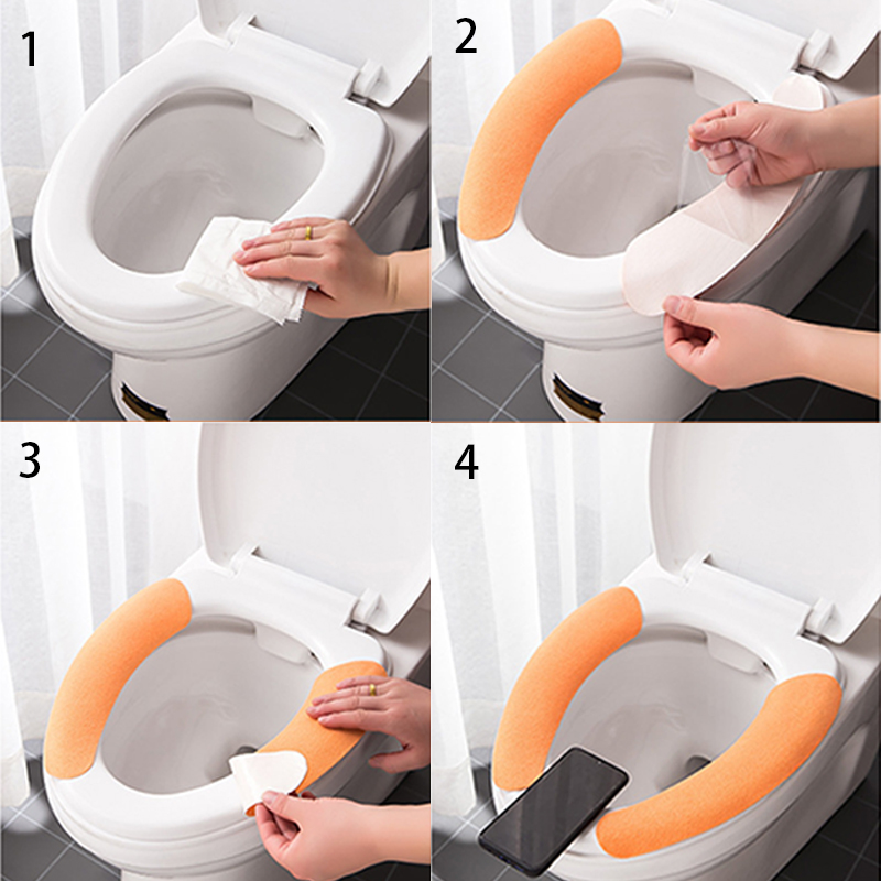 4. Простая установка: Просто снимите защитную пленку с задней стороны крышки сиденья унитаза, а затем приклейте ее непосредственно на сиденье унитаза, легко и просто. Пожалуйста, держите поверхность сиденья унитаза чистой и сухой перед использованием.