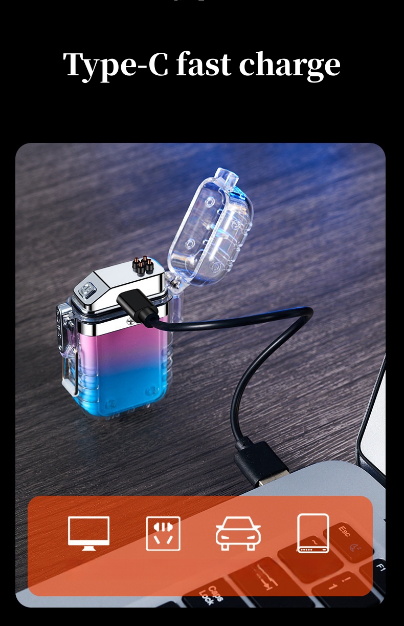 Новинка ветрозащитная Зажигалка для улицы с двойной дугой плазменная импульсная беспламенная USB перезаряжаемая Зажигалка Мини Портативная работа мужской подарок