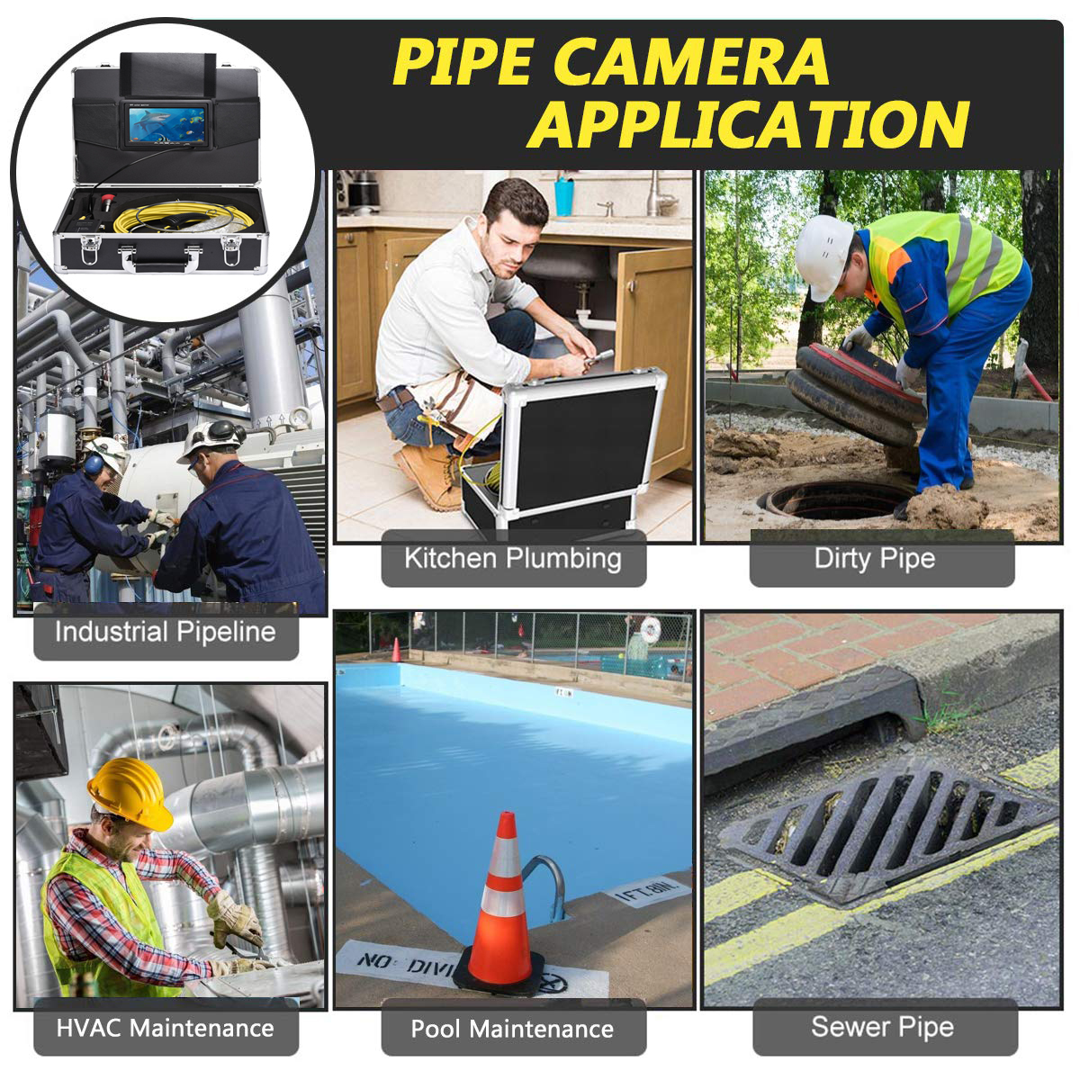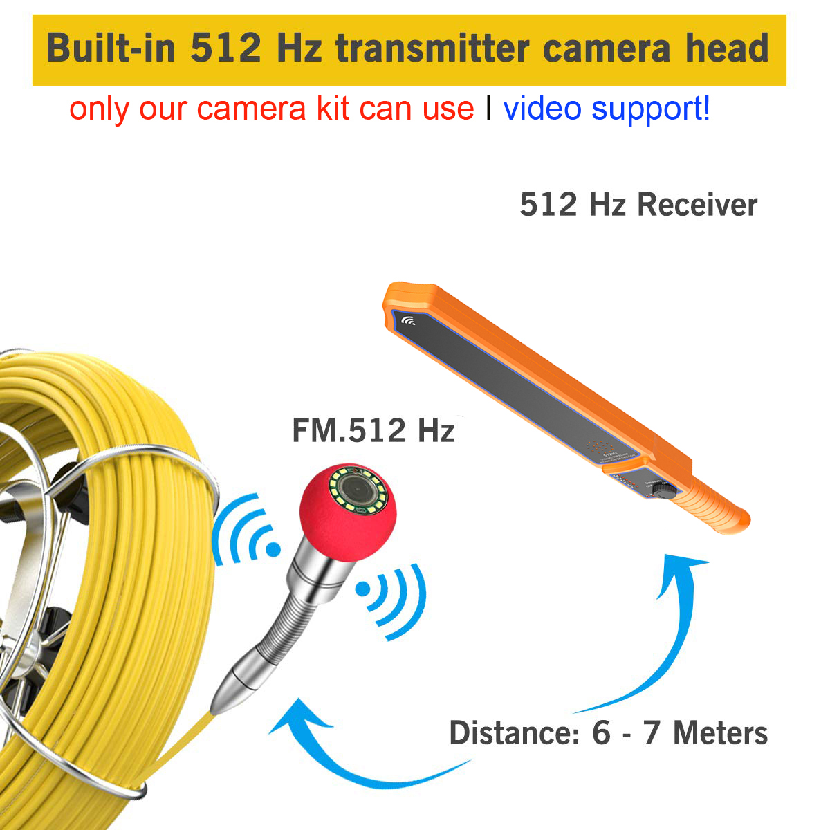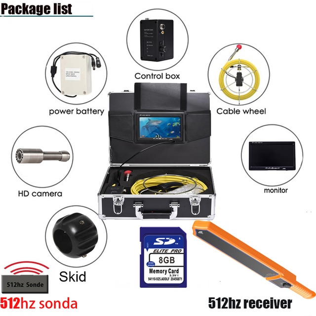 Новинка, водонепроницаемый комплект подводной камеры для осмотра труб в промышленной канализации, 40 м, 512 Гц
