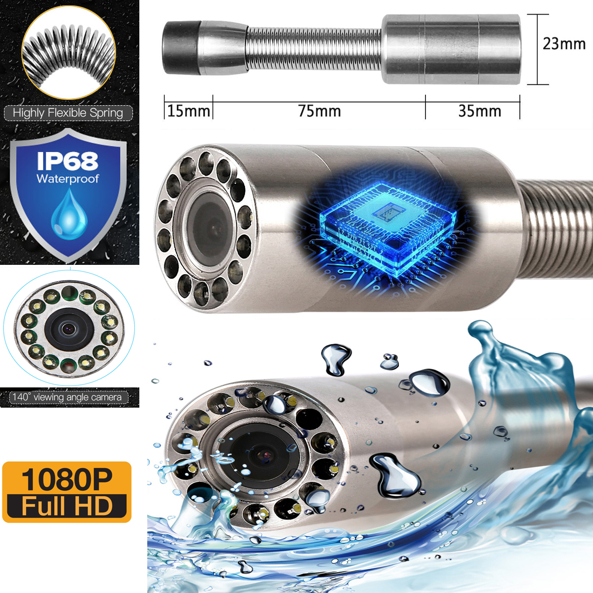 OSPL-23-это профессиональная, полная система видеокамеры сIP68 23 мм диаметр головки камеры и 5 мм стекло Волоконная проволока для канализационной сливной трубы, контроль змеи, а также другие области применения, которые не достигаются человеческими глазами.