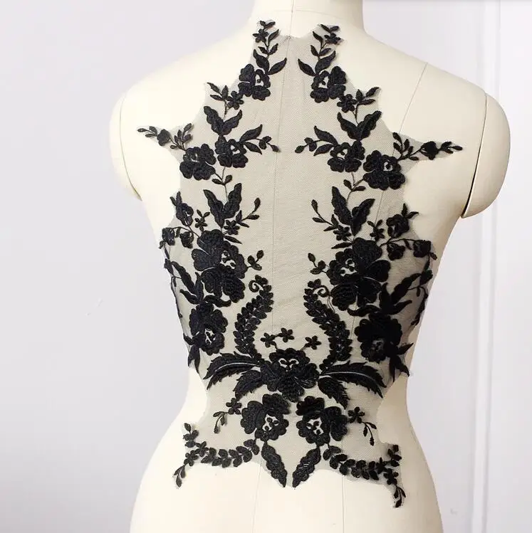 Новое поступление 1 шт. 31*43 см вышитый кружевной воротник изысканный черный цветок кружевная ткань Скрапбукинг товары для шитья