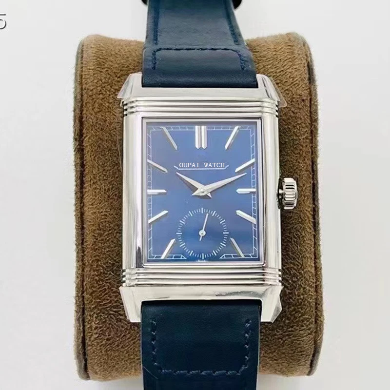 Новое поступление 2023 Механические Мужские наручные часы OUPAI квадратные деловые наручные часы с двойным часовым поясом водонепроницаемые с кожаным ремешком