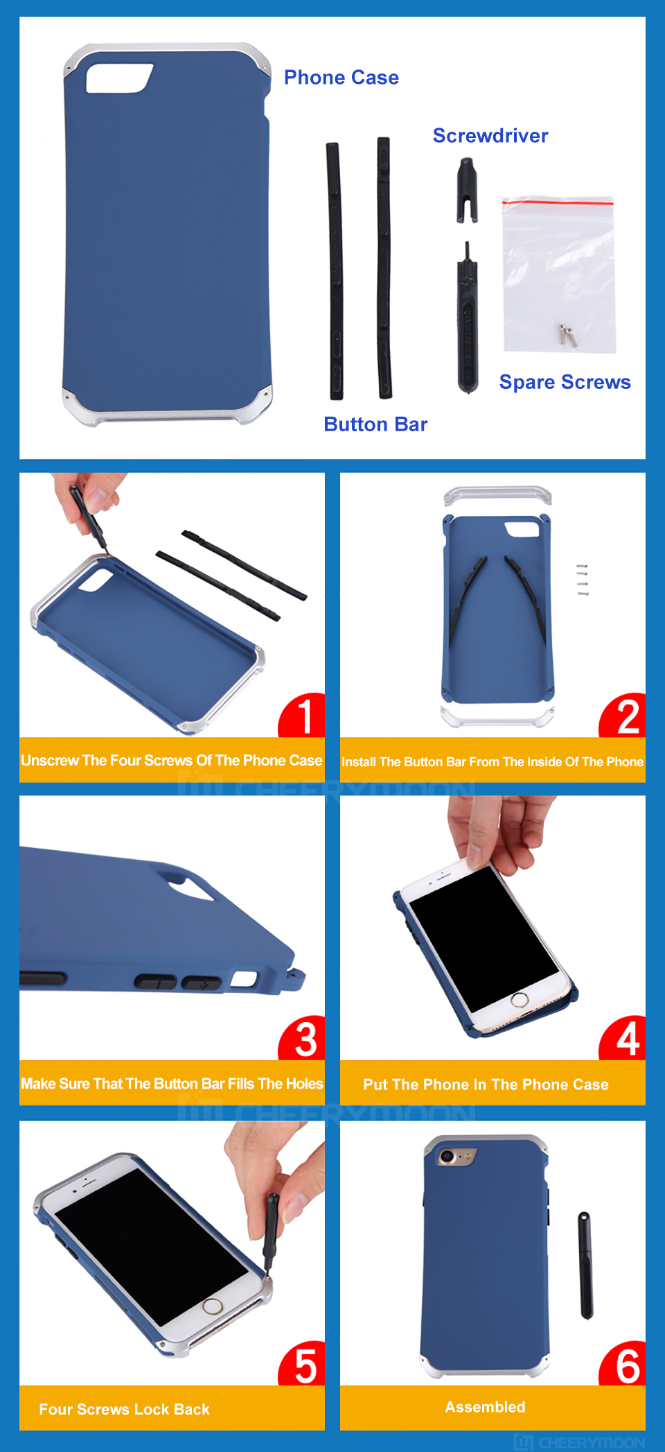 Аксессуары к продукту включают: чехол для телефона, Панель кнопок, отвертку, запасные части.